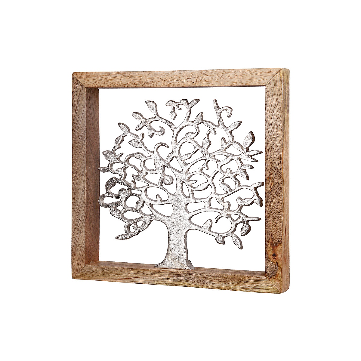 Διακοσμητικό δέντρο της ζωής σε κορνίζα ασημί/φυσικό αλουμίνιο/ξύλο 2x20x20cm.