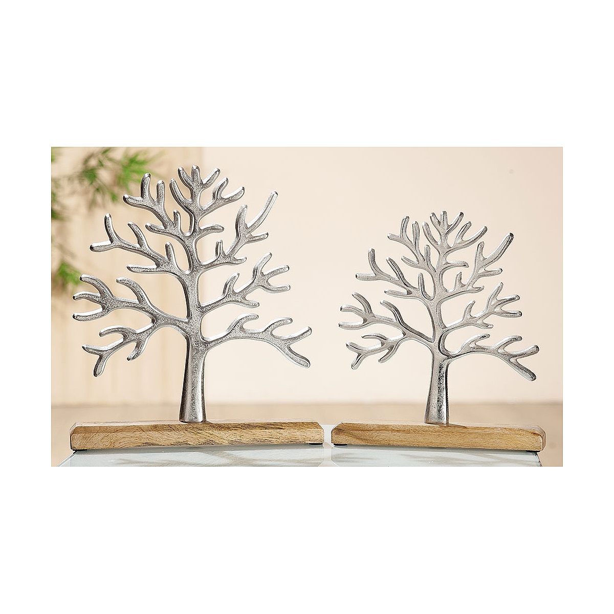 Διακοσμητικό δέντρο της ζωής σε βάση ασημί/φυσικό αλουμίνιο/ξύλο 30x5x32cm.