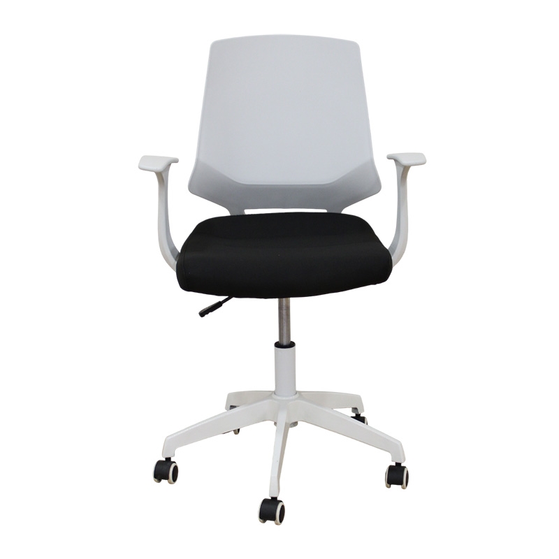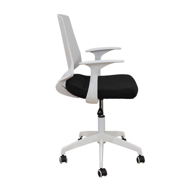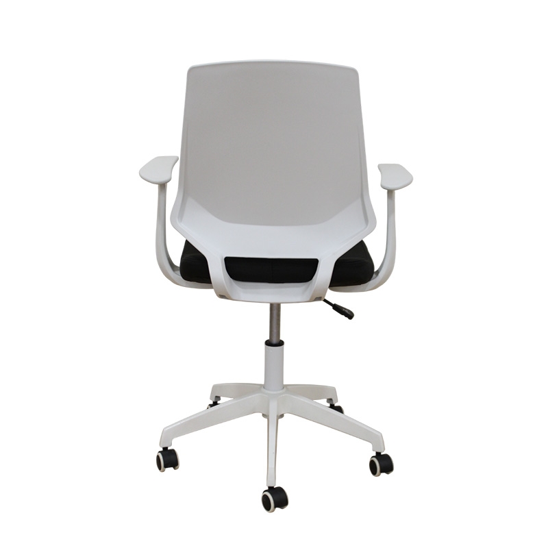 Περιγραφή A1150-W πολυθρόνα γραφείου με minimal σχεδίαση και λευκή πλάτη χωρίς υφασμάτινη επένδυση για μέγιστη ευκολία στο καθάρισμα και ανθεκτικότητα. Η έδρα είναι ενδεδυμένη με μαύρο ύφασμα και προσφέρει ξεκούραστο κάθισμα. Τα μπράτσα το αμορτισέρ και η βάση είναι λευκά. Το κάθισμα ρυθμίζεται στο επιθυμητό ύψος ανάλογα με το ύψος του γραφείου που χρησιμοποιούμε και το ύψος του χρήστη.