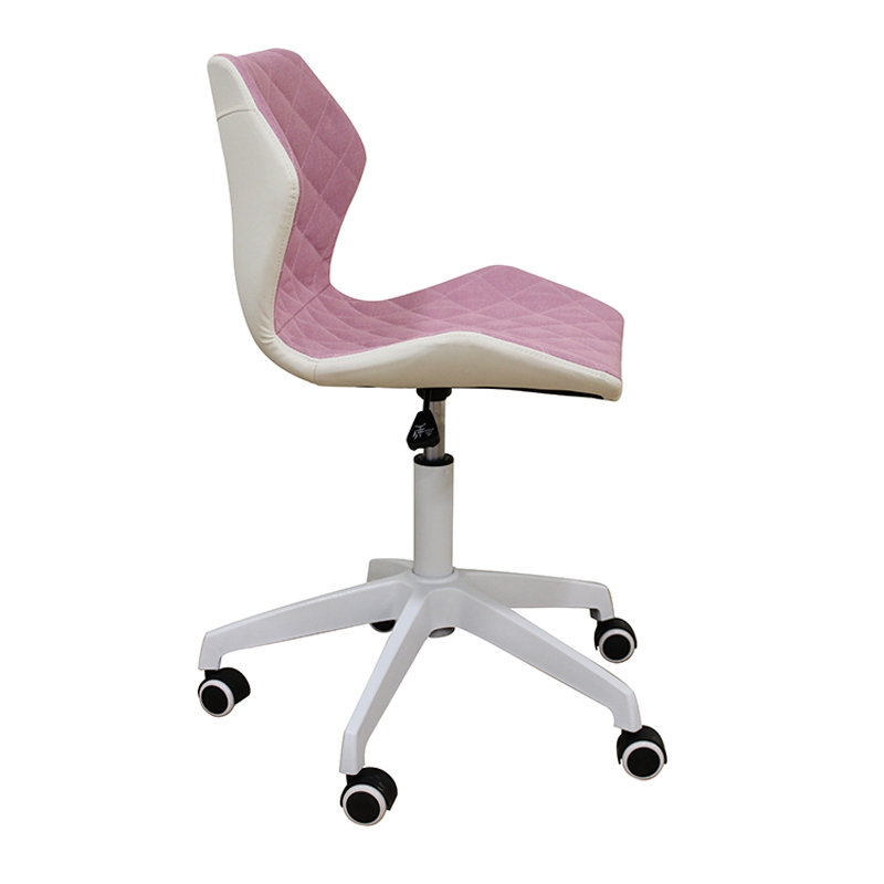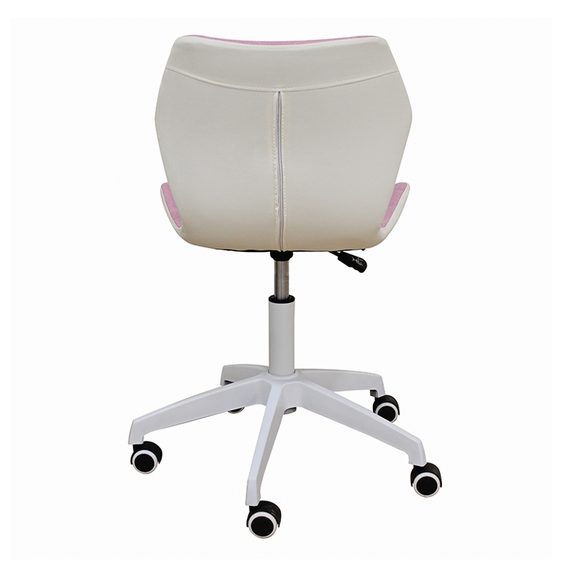 A1700-W καρέκλα γραφείου με εντυπωσιακό design, επένδυση από ύφασμα καπιτονέ σε ροζ χρώμα και από την πίσω πλευρά του καθίσματος η πλάτη είναι σε λευκό PU. Το κάθισμα ρυθμίζεται στο επιθυμητό ύψος και κάνει πλήρη περιστροφή. Η βάση και το αμορτισέρ του καθίσματος είναι μεταλλικά λευκά για μεγαλύτερη αντοχή.