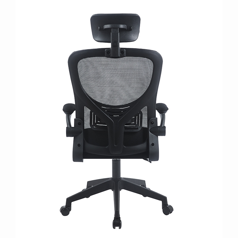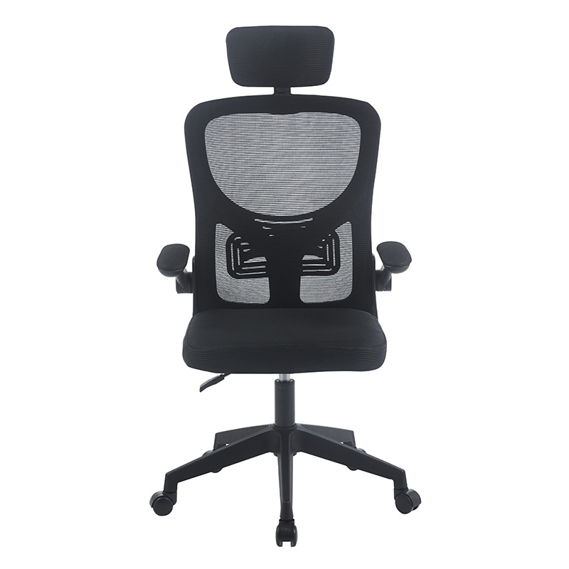 Περιγραφή A9945 πολυθρόνα γραφείου με mesh ύφασμα στο κάθισμα μαύρου χρώματος καθώς επίσης και ανατομική πλάτη σε mesh ύφασμα χρώματος μαύρο για να αναπνέει η πλάτη.Διαθέτει προσκέφαλο για σωστή στήριξη του κεφαλιού και πτυσσόμενα μπράτσα επενδεδυμένα με μαύρο mesh ύφασμα για μεγαλύτερη άνεση,ρυθμιζόμενο ύψος,πλαστικό πόδι και ρόδες για εύκολη μετακίνηση.