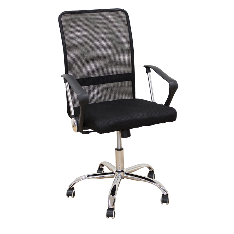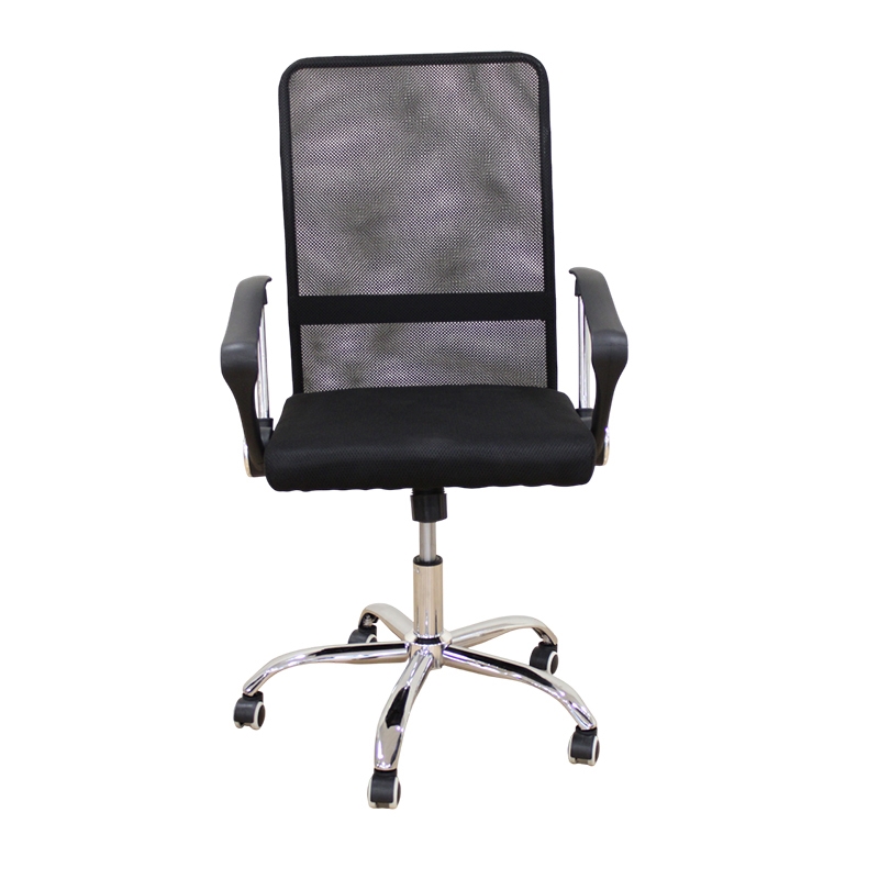 Α9946 πολυθρόνα γραφείου με μοντέρνο σχεδιασμό, πλάτη ενδεδυμένη με μαύρο mesh ύφασμα για να αποτρέπει την εφίδρωση και ανεξάρτητα μπράτσα με κεκλιμένη επιφάνεια που χαρίζουν περισσότερη εργονομία. Ανάκλιση πλάτης για μεγαλύτερη άνεση και μηχανισμό αυξομείωσης του ύψους με αμορτισέρ. Η βάση είναι χρωμίου για μεγαλύτερη αντοχή. Μπορεί να συνδυαστεί σε όλους τους χώρους.