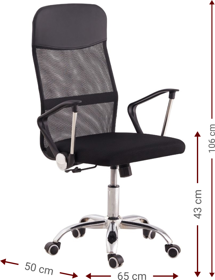 Υλικά κατασκευής Βάση: Μεταλλική χρωμέ Επένδυση: Ύφασμα υψηλής ποιότητας τύπου mesh στην πλάτη με δερματίνη PU στο προσκέφαλο Κάθισμα: Αφρολέξ