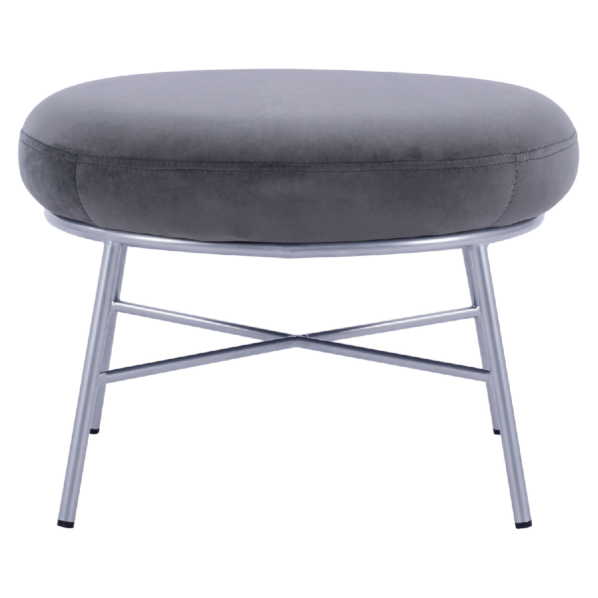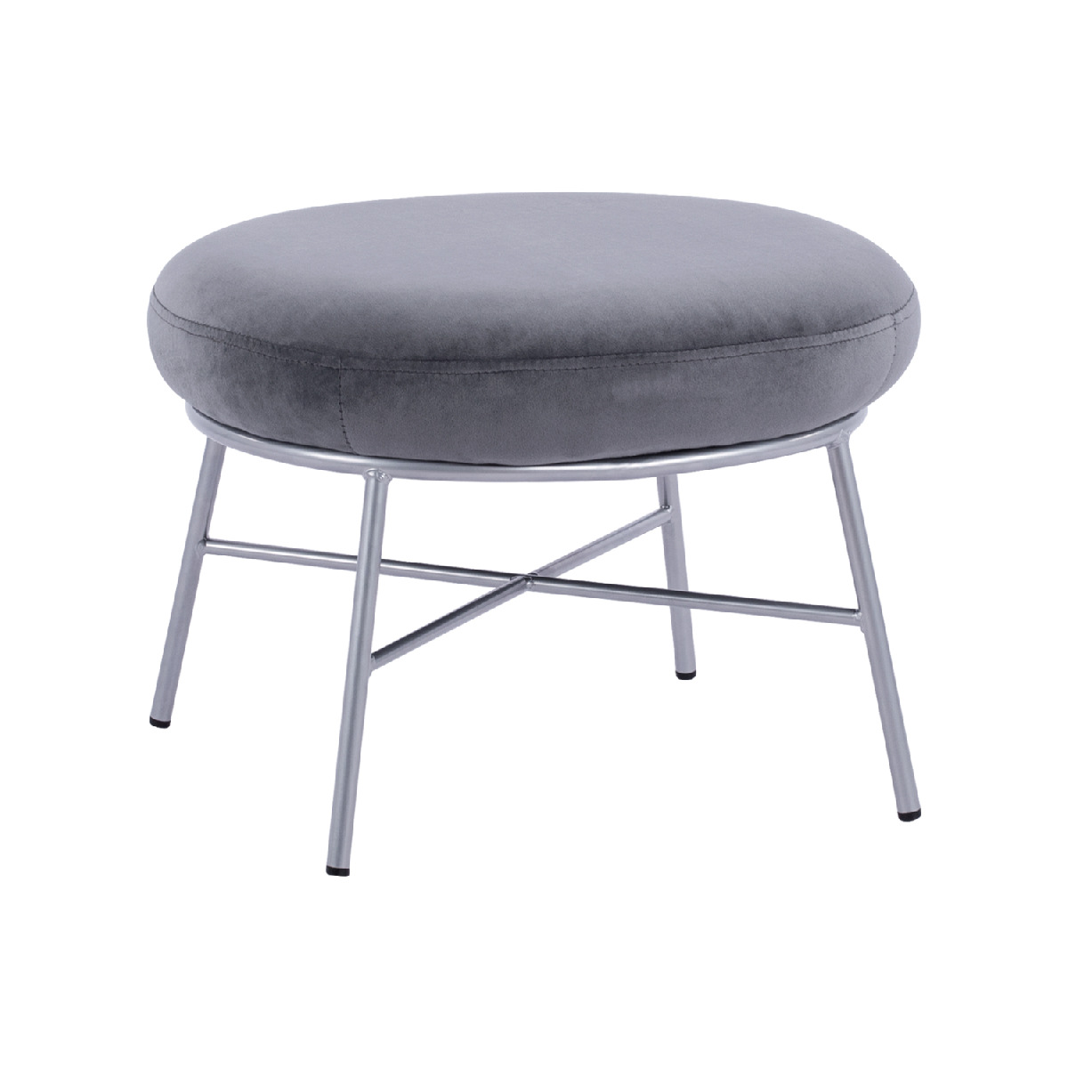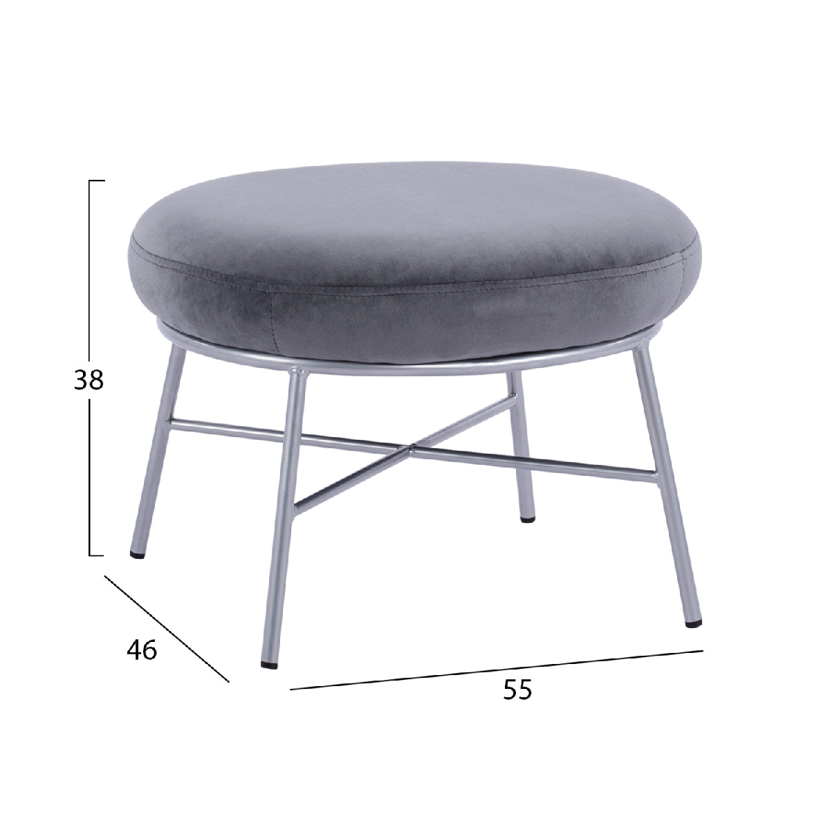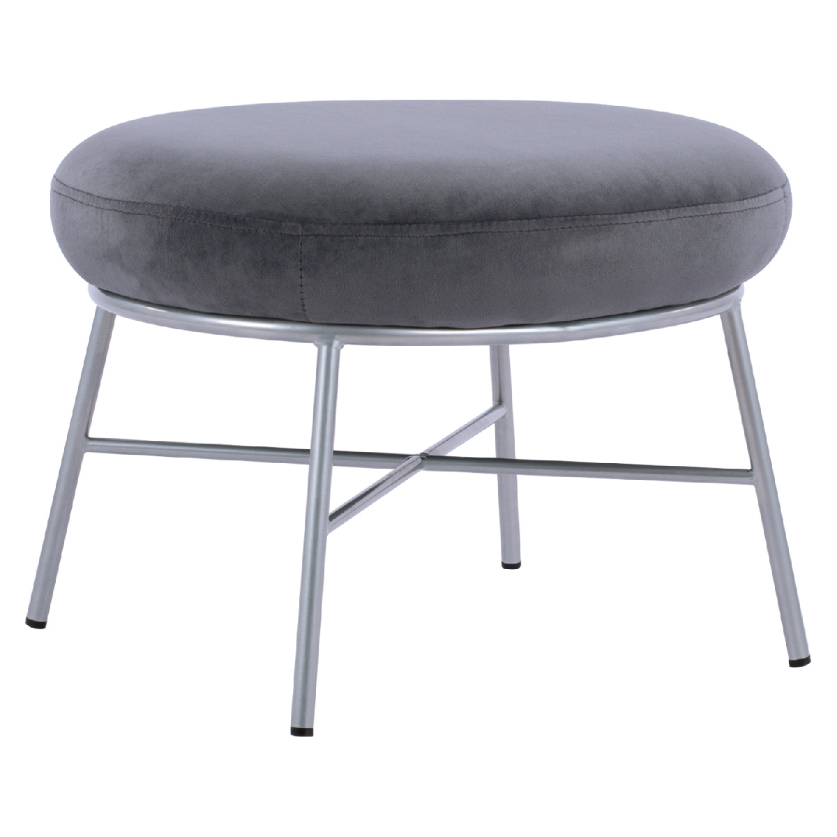 Σκαμπό υποπόδιο TRUDI από βελούδο σε γκρι απόχρωση, με μεταλλική βάση σε ασημί χρώμα.