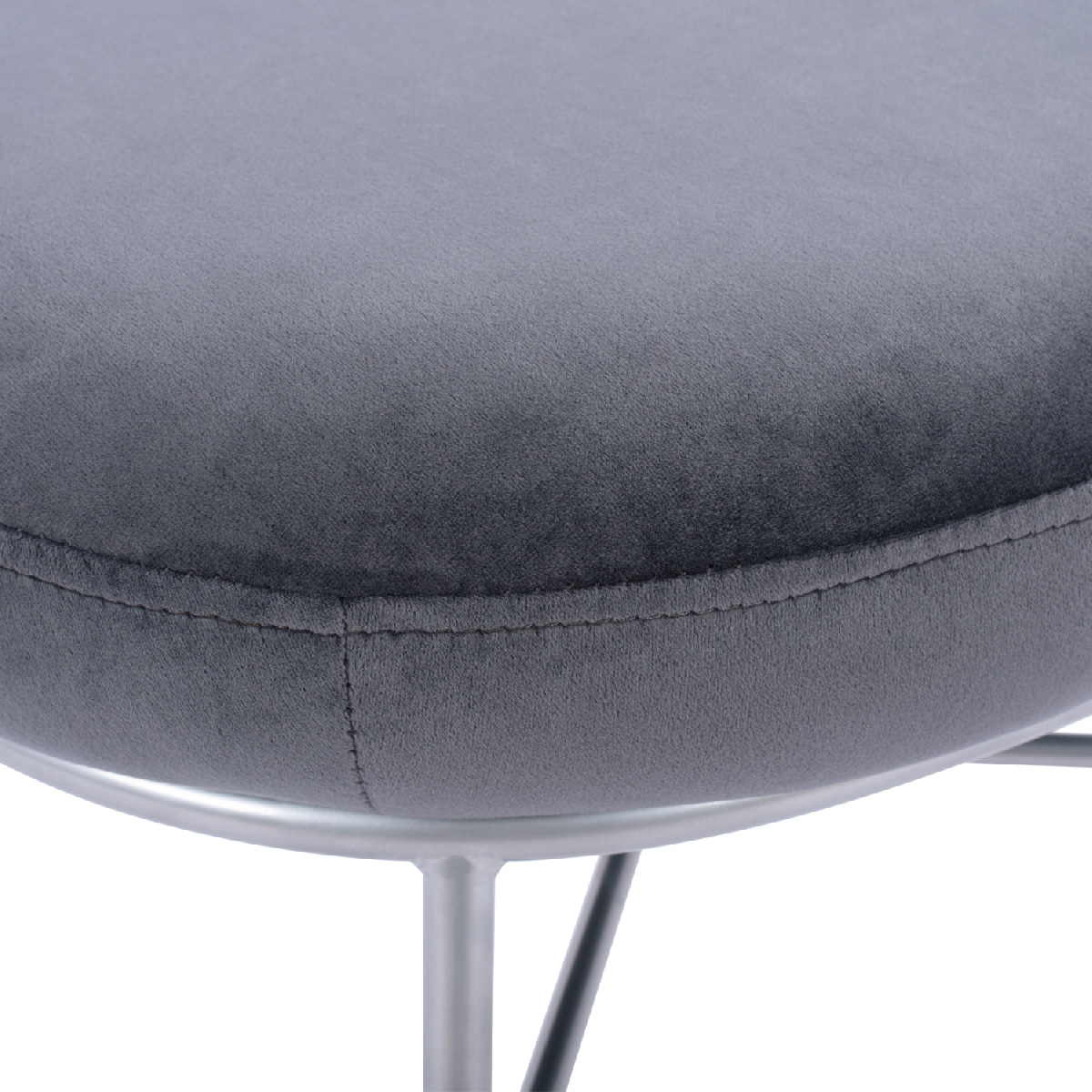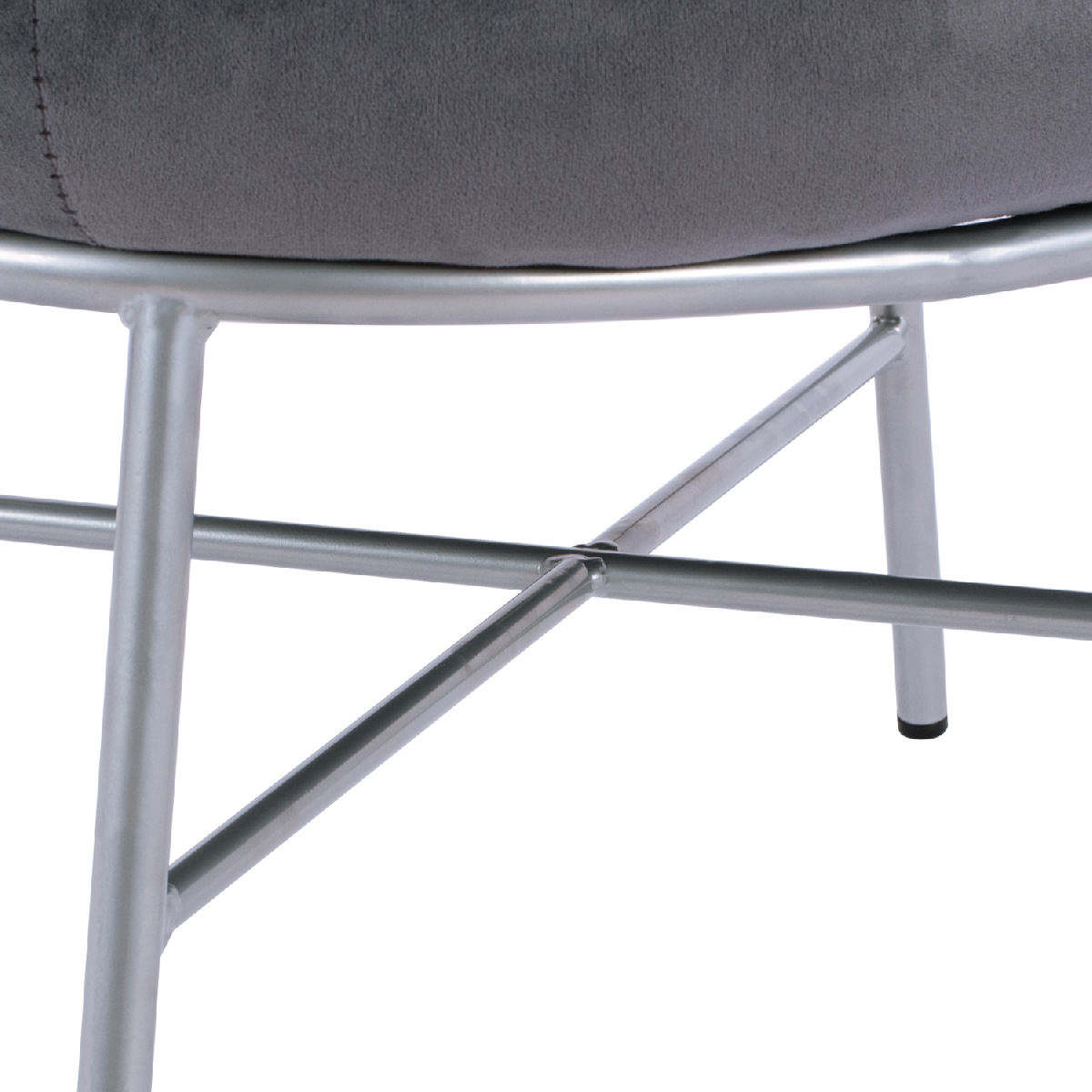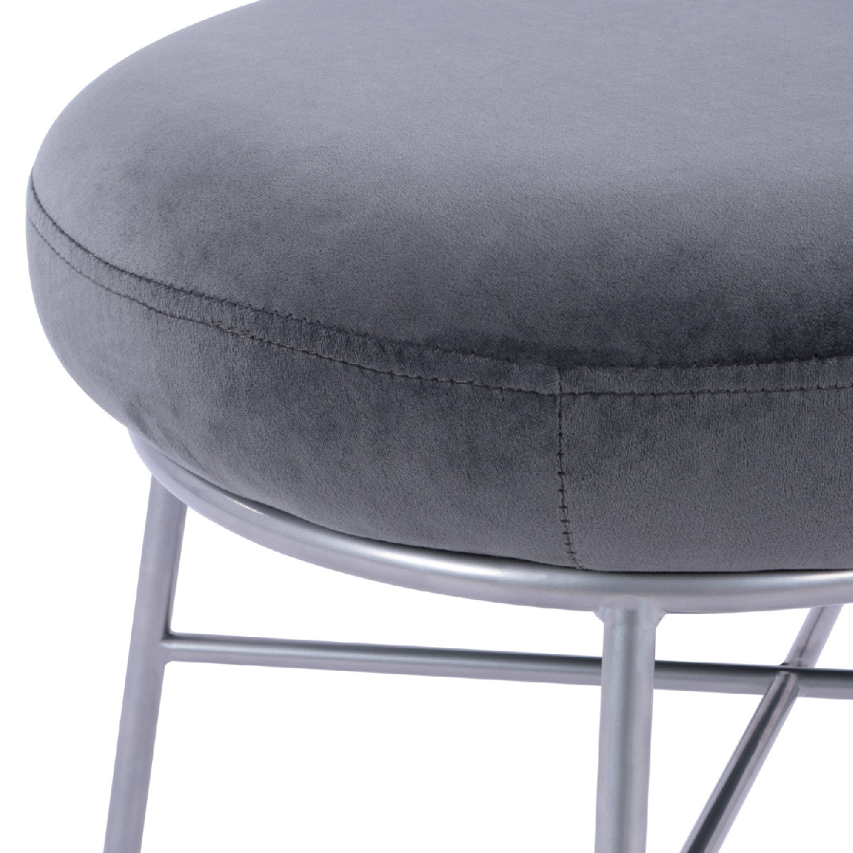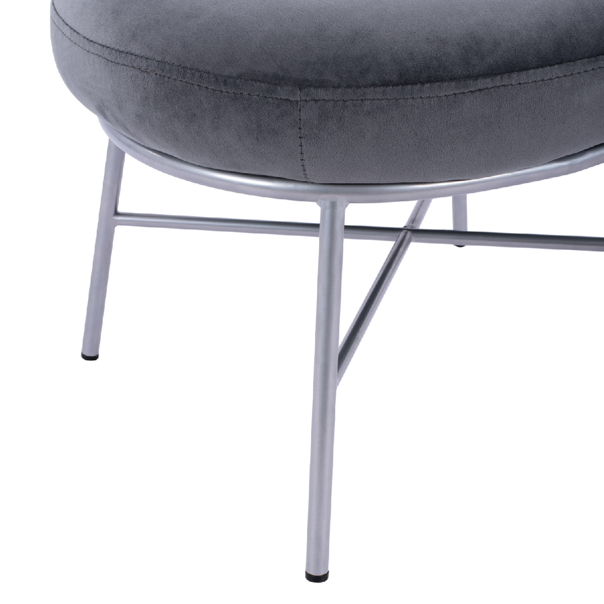 Σκαμπό υποπόδιο TRUDI από βελούδο σε γκρι απόχρωση, με μεταλλική βάση σε ασημί χρώμα.