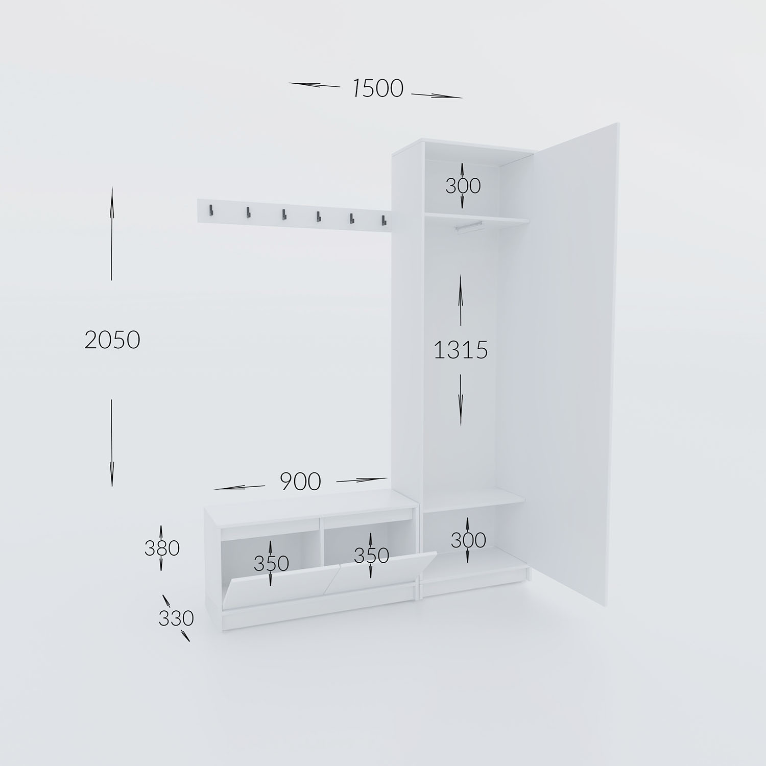 • Μία παπουτσοθήκη, με δύο ντουλάπια για την τοποθέτηση παπουτσιών