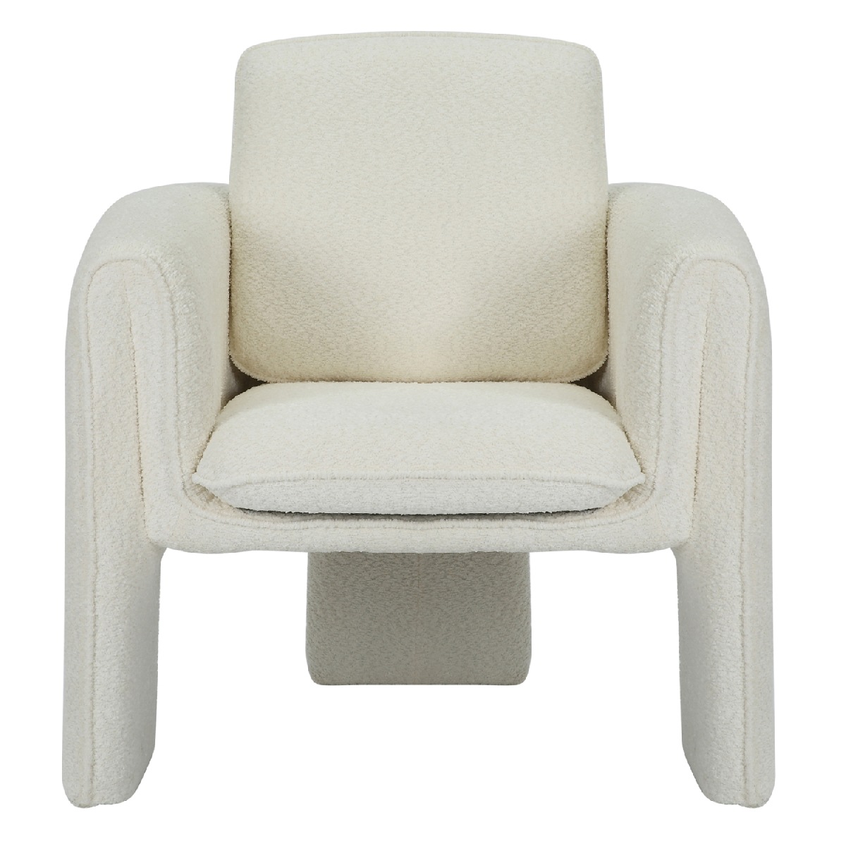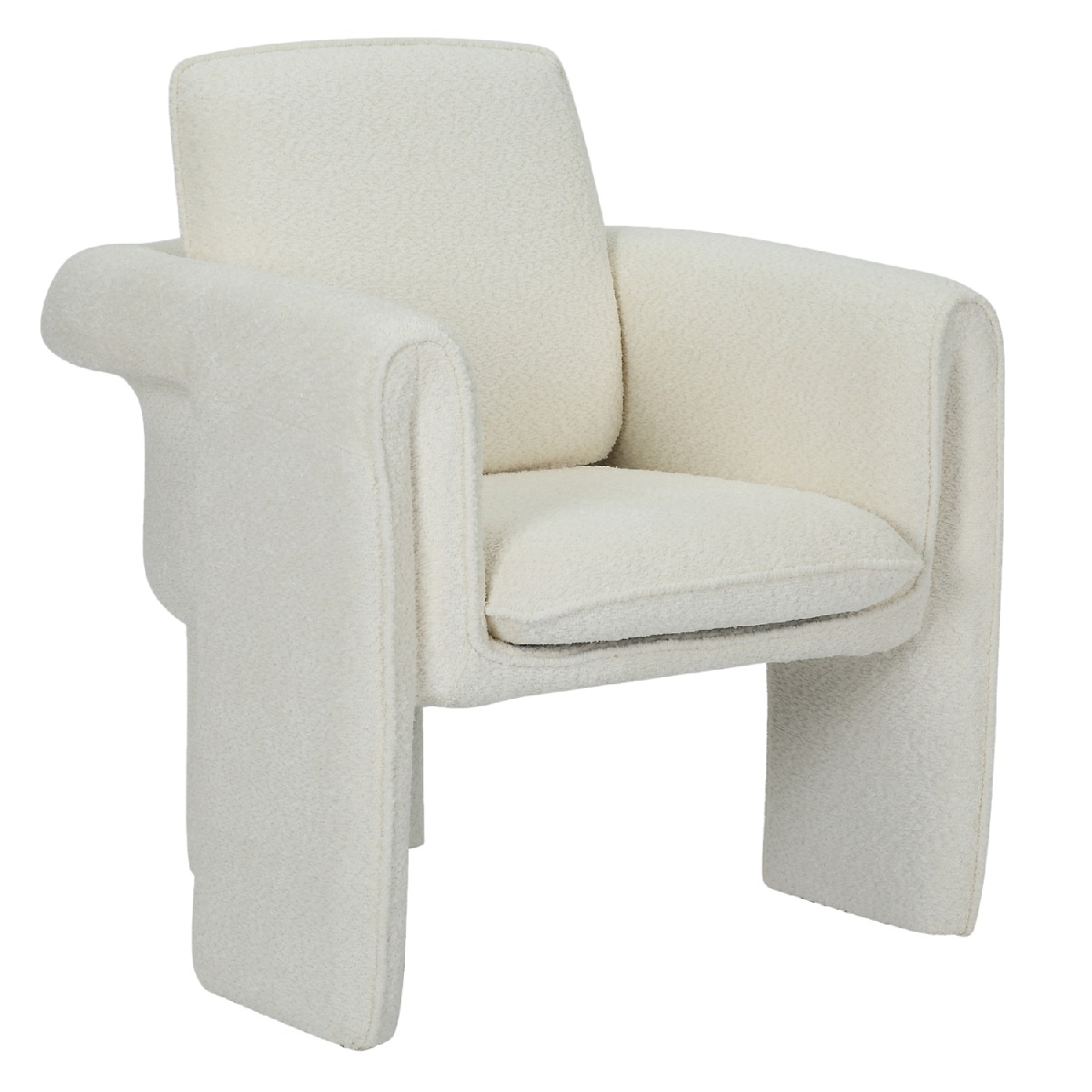 Ο σκελετός της πολυθρόνας είναι μεταλλικός με ηλεκτροστατική βαφή, ενώ ολόκληρη η επένδυση έχει γίνει με μπουκλέ ύφασμα εξαιρετικής ποιότητας και υφής. Μπουκλέ λέγεται οποιοδήποτε ύφασμα που έχει κόμπο-μπούκλα στην ύφανσή του. Κατασκευάζεται από σχεδόν όλες τις πρώτες ύλες (αν και συνήθως είναι συνθετικό) με ειδικές κλωστές με κόμπους ή πολύ στριμμένα νήματα, έτσι ώστε να έχει σγουρή επιφάνεια. Δεν τσαλακώνει και μπορεί να είναι μονόχρωμο, μελανζέ ,καρώ ή τουιντ.