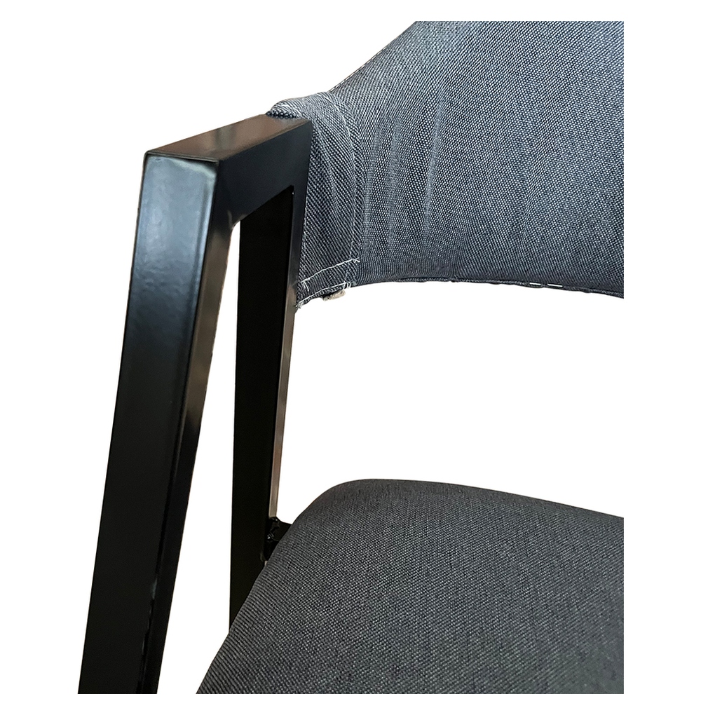 Κατασκευασμένη από υψηλής ποιότητας γκρι ύφασμα και ανθεκτικά μαύρα μεταλλικά πόδια, προσφέρει αντοχή και σταθερότητα.
