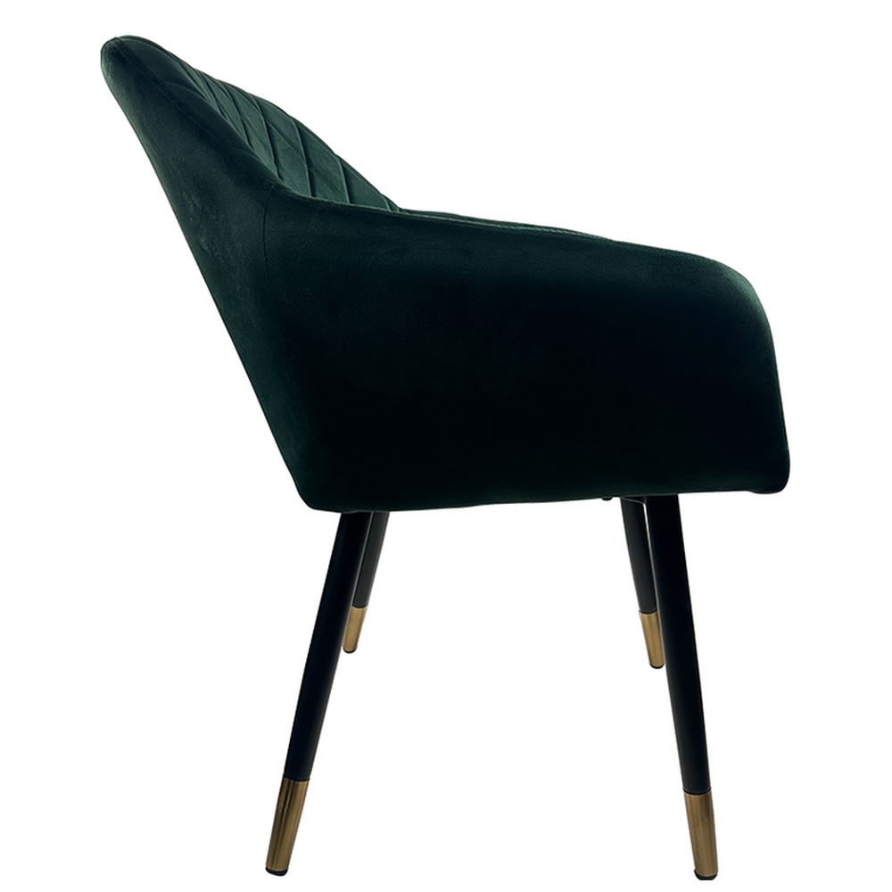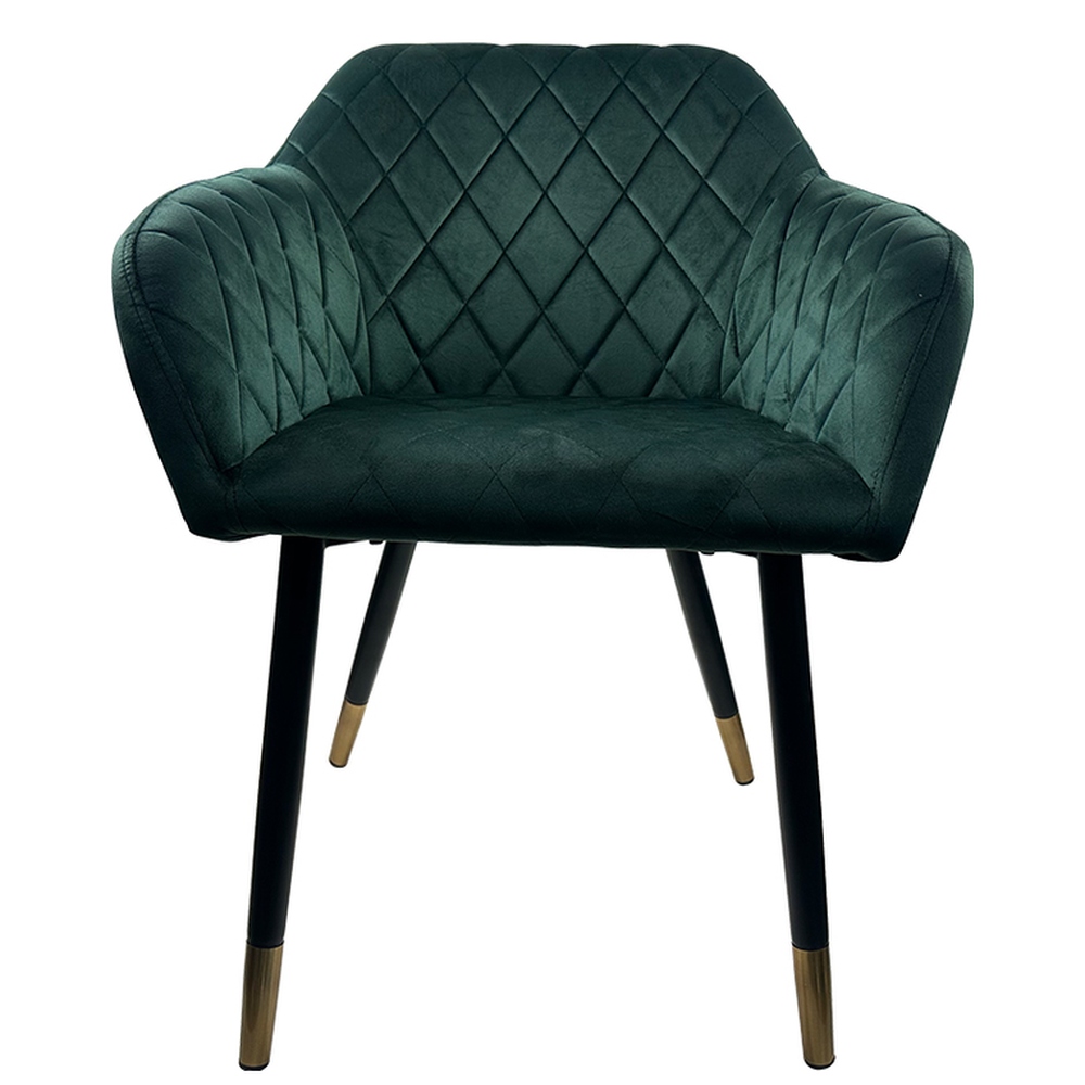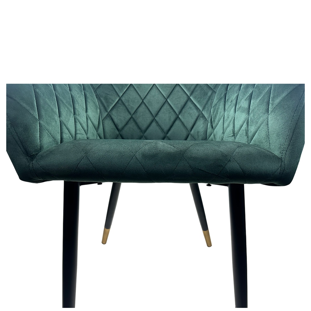 Η καρέκλα τραπεζαρίας ESPERANZA της ArteLibre σε πράσινο βελούδο προσθέτει μια αίσθηση φρεσκάδας και πολυτέλειας στο χώρο σας. Το βαθυπράσινο βελούδο δημιουργεί ένα κομψό και κλασικό στυλ, ενώ το καπιτονέ σχέδιο προσθέτει επιπλέον διάσταση και υφή. Τα μαύρα μεταλλικά πόδια με τις χρυσαφένιες λεπτομέρειες δίνουν μια διακριτική λάμψη, καθιστώντας την καρέκλα ιδανική για κάθε σύγχρονη τραπεζαρία.