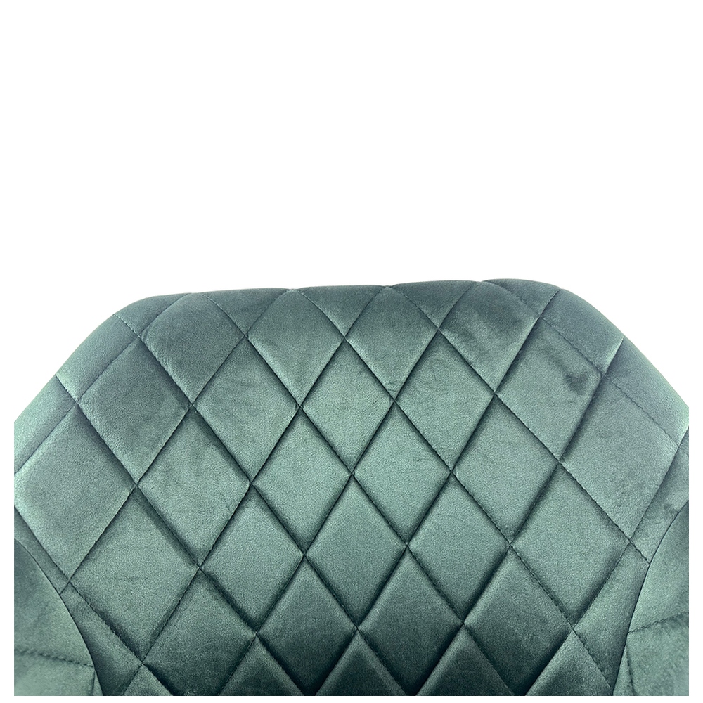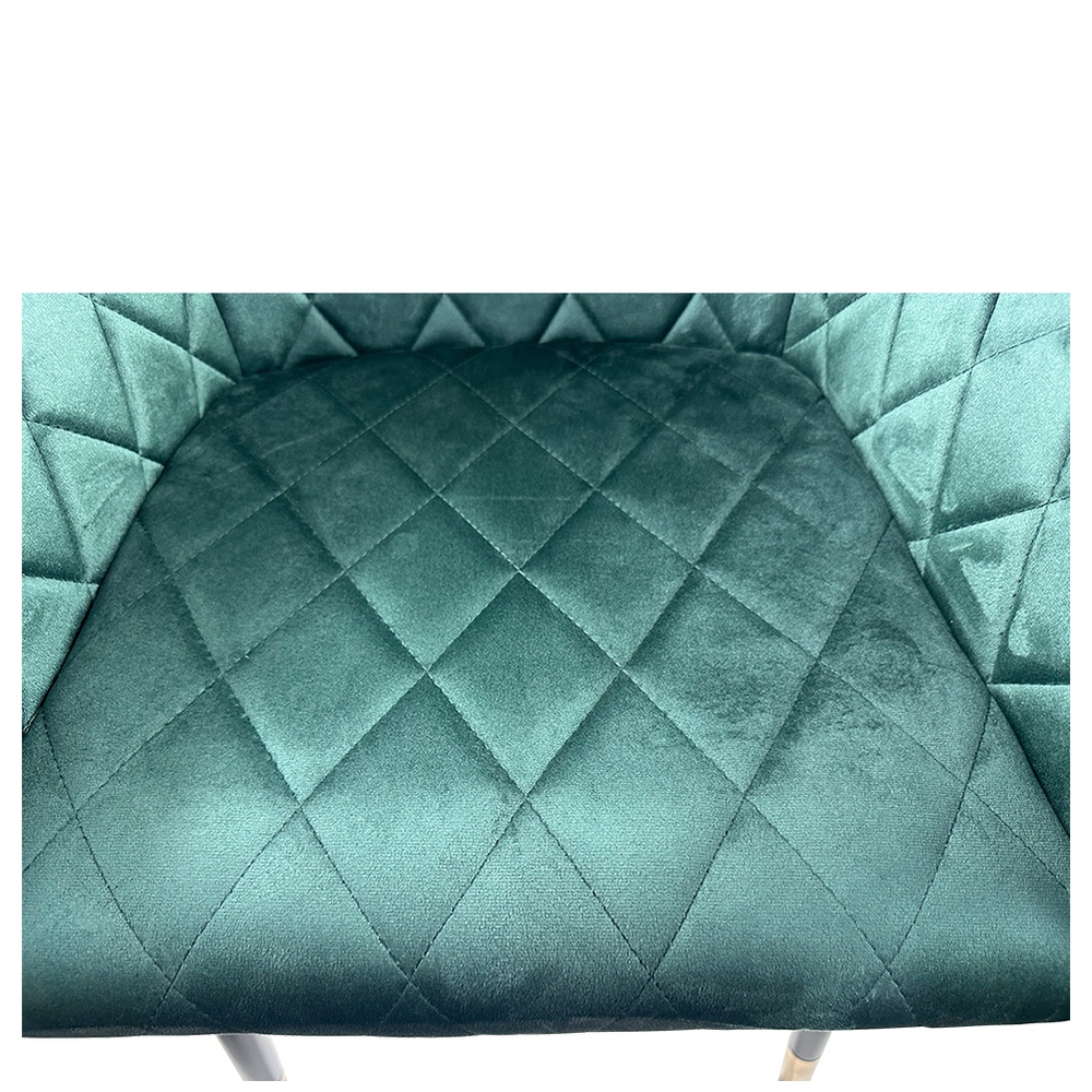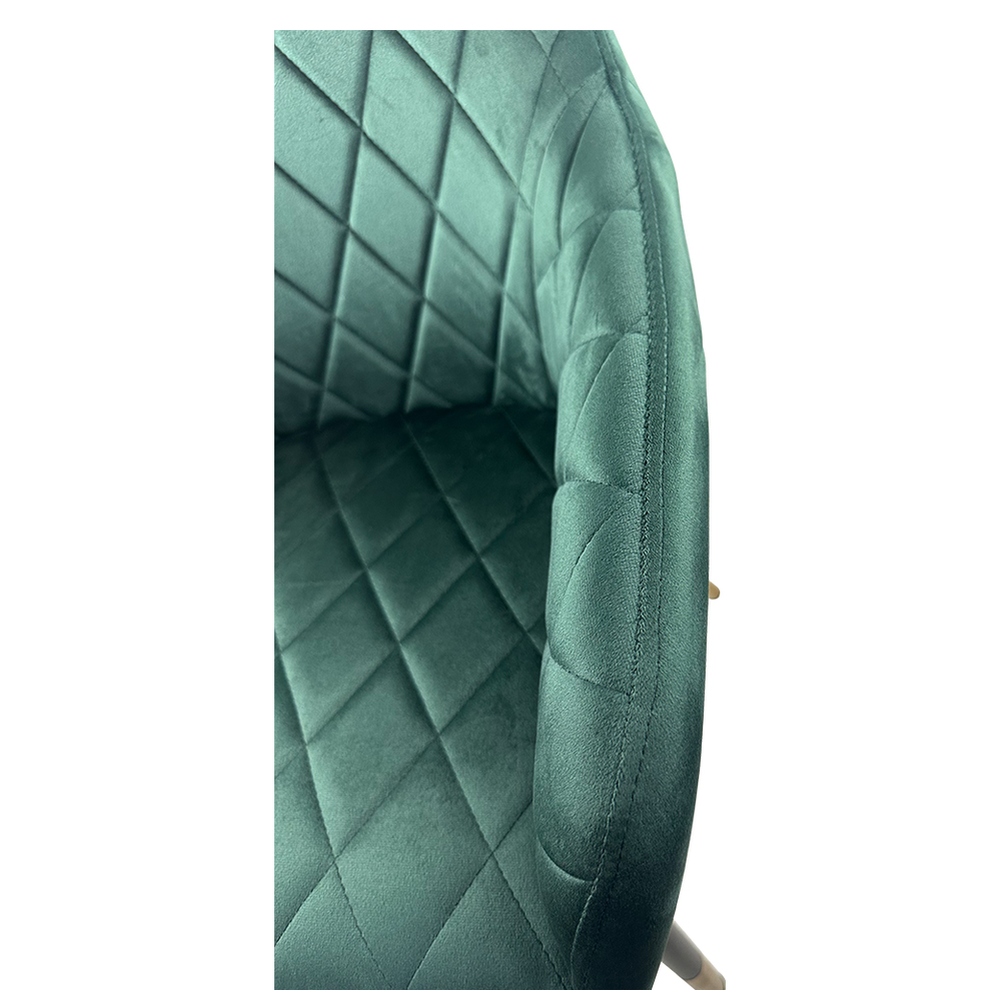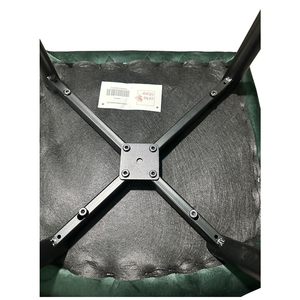 Κατασκευασμένη από υψηλής ποιότητας πράσινο βελούδο για άνεση και κομψότητα, με ανθεκτικά μαύρα μεταλλικά πόδια που προσφέρουν σταθερότητα και αντοχή.