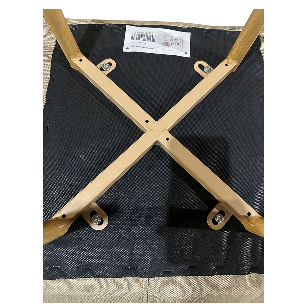 Κατασκευασμένη από υψηλής ποιότητας ύφασμα σε ανοιχτό καφέ και ανθεκτικά φυσικά μεταλλικά πόδια, εξασφαλίζει μακροχρόνια αντοχή και σταθερότητα.