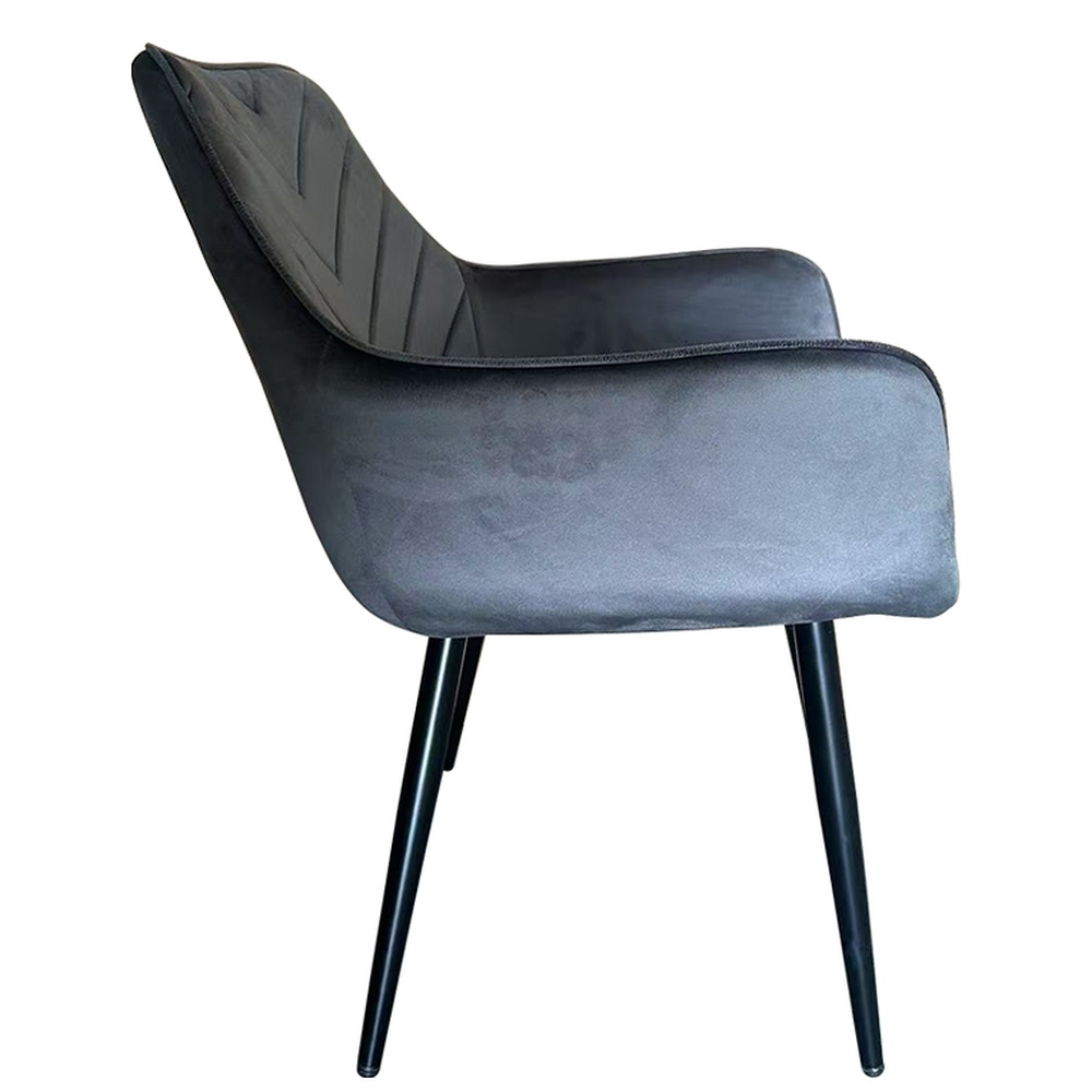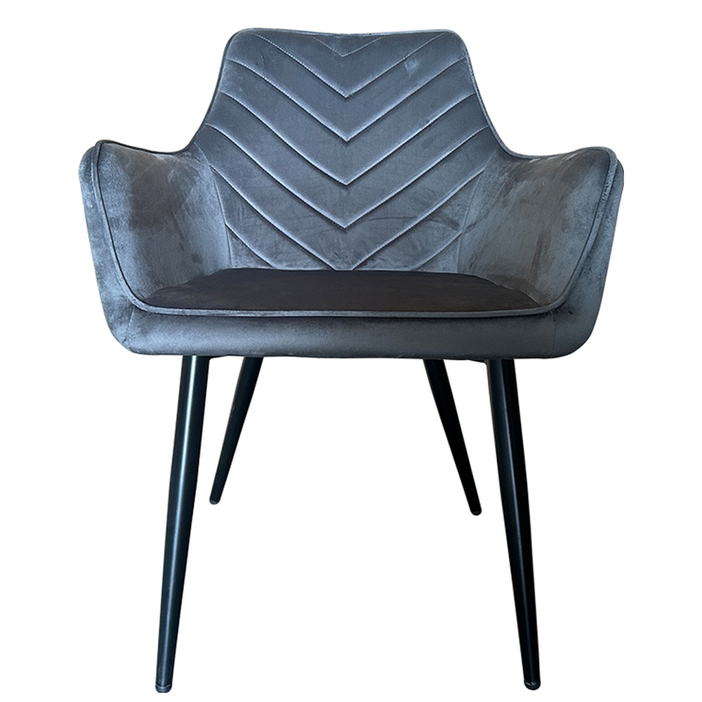 Η καρέκλα τραπεζαρίας FLORITA της ArteLibre σε γκρι και μαύρο βελούδο προσφέρει έναν κομψό συνδυασμό κλασικής κομψότητας και μοντέρνου στυλ. Το γκρι βελούδο προσθέτει μια διακριτική και εκλεπτυσμένη αίσθηση, ενώ τα μαύρα μεταλλικά πόδια παρέχουν σταθερότητα και αντοχή. Το σχέδιο με τις διαγώνιες ραφές στην πλάτη ενισχύει τη μοναδική της αισθητική, καθιστώντας την ιδανική επιλογή για σύγχρονες τραπεζαρίες.