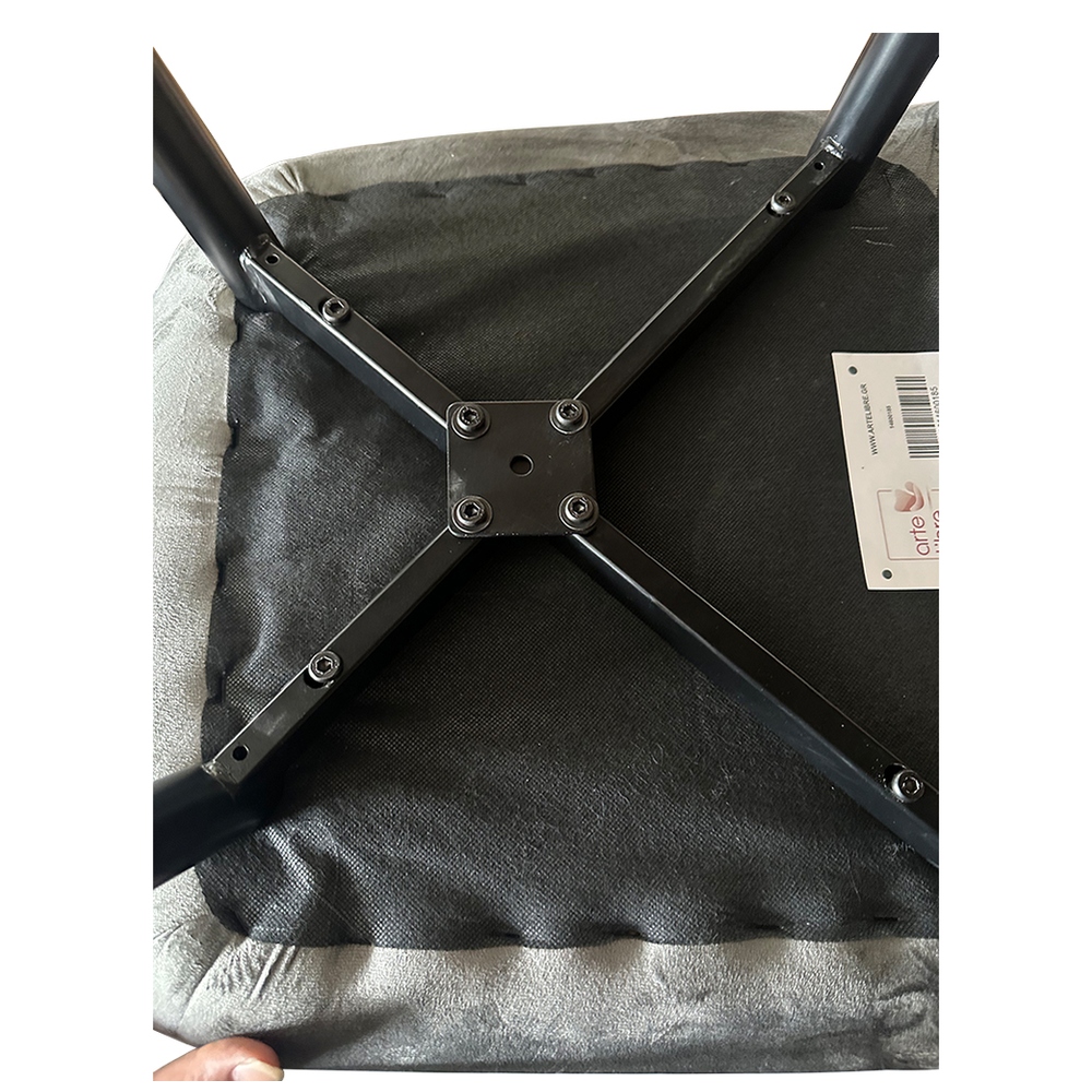 Κατασκευασμένη από υψηλής ποιότητας γκρι βελούδο και ανθεκτικά μαύρα μεταλλικά πόδια, εξασφαλίζει σταθερότητα και αντοχή.