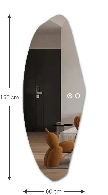 Καθρέπτης Torenia με ελεύθερη, κυματιστή γεωμετρία που ξεφεύγει από τις αυστηρές γραμμές και προσθέτει στον χώρο μια ανάλαφρη αίσθηση φυσικής ροής. Ο περιμετρικός LED φωτισμός ακολουθεί το ασύμμετρο περίγραμμα, δημιουργώντας ένα ξεχωριστό εφέ φωτεινότητας και βάθους.