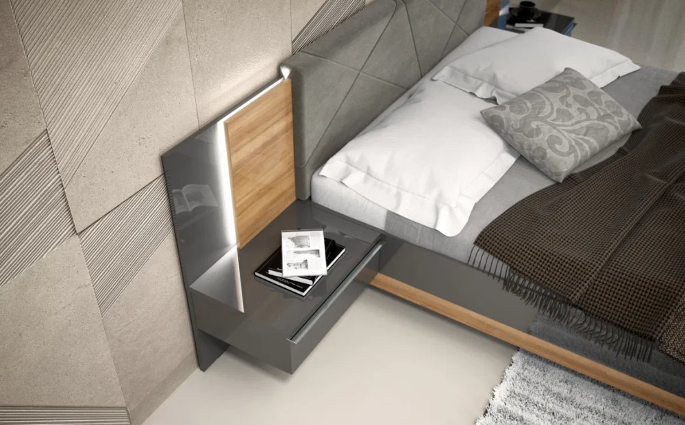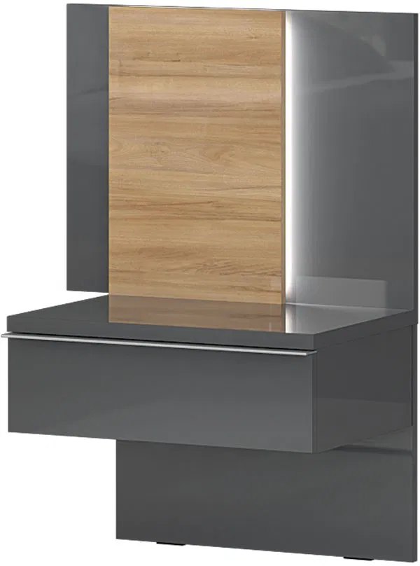 Κομοδίνο Agate plus, μοντέρνου σχεδιασμού με λεπτομέρειες διχρωμίας, με ιδανικές διαστάσεις, αποθηκευτικό χώρο και φωτισμό Led.