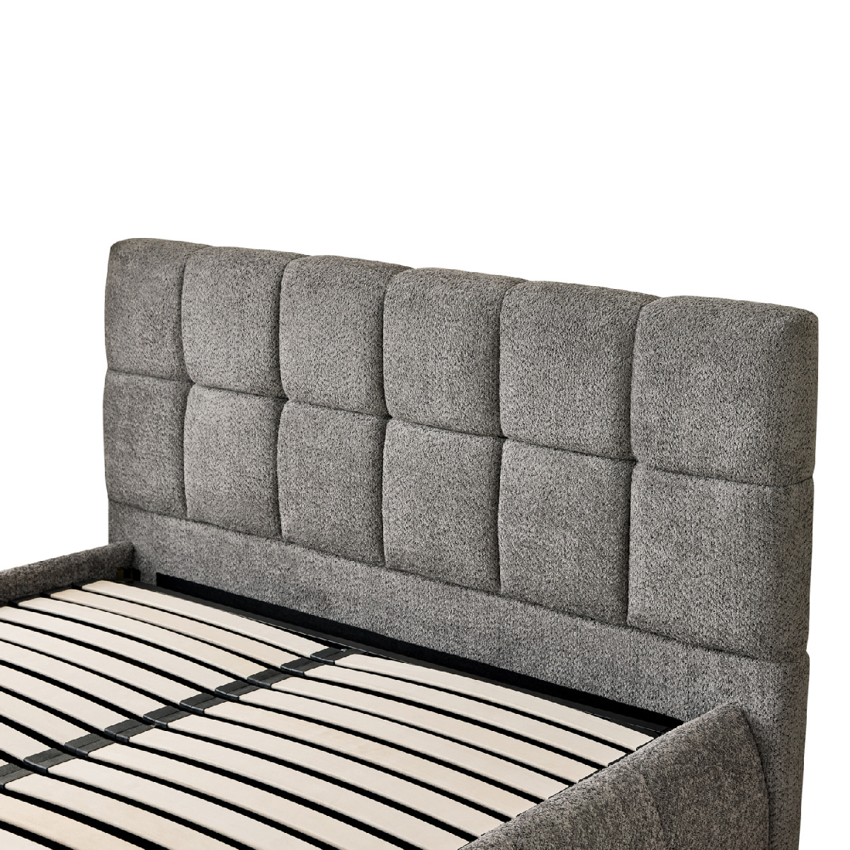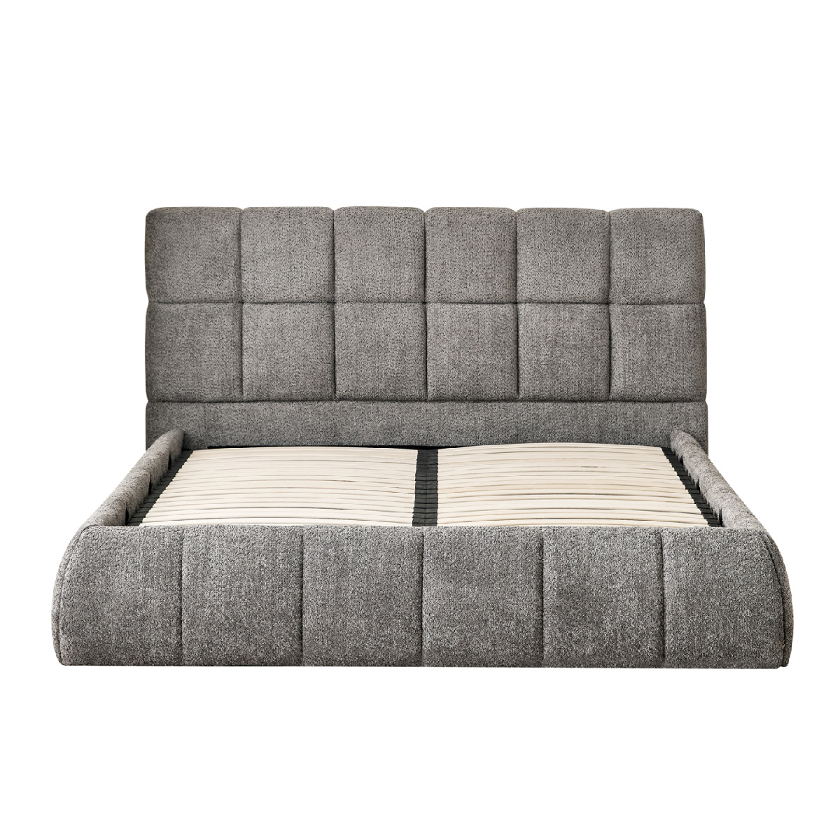 Το στρώμα στηρίζεται σε 20 σειρές εργονομικές τάβλες στήριξης, οι οποίες τοποθετούνται σε ένα μεταλλικό πλαίσιο που ανασηκώνεται με μηχανισμό ασφαλείας, προσφέροντας έναν μεγάλο αποθηκευτικό χώρο επενδυμένο επίσης με ύφασμα. Μια μοντέρνα πρόταση που θα ανανεώσει το υπνοδωμάτιό σας.