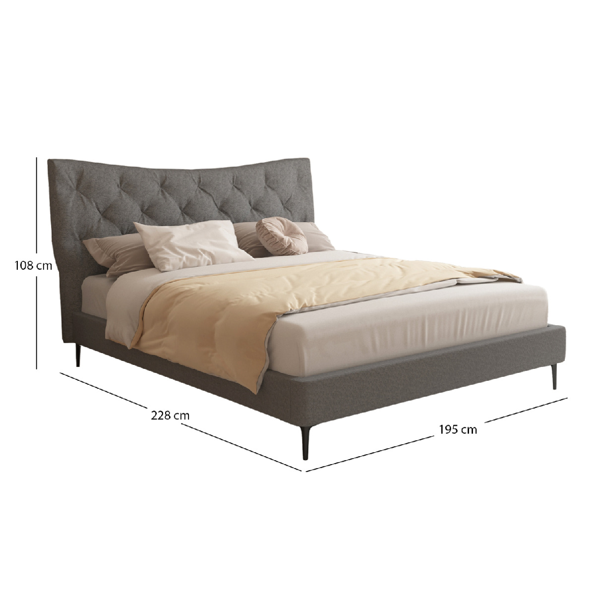 Το JILL είναι ένα νέο κρεβάτι σε διπλή διάσταση που θα αναβαθμίσει την εικόνα του υπνοδωματίου σας. Είναι επενδυμένο με εξαιρετικό ύφασμα σε ΓΚΡΙ χρώμα ενώ το κεφαλάρι είναι σχετικά ψηλό και με καπιτονέ τεχνοτροπία. Τα ψηλά και κομψά μαύρα μεταλλικά πόδια προσθέτουν μια μοντέρνα πινελιά, εξασφαλίζοντας παράλληλα στιβαρότητα και ανθεκτικότητα. Με πυκνές σειρές εργονομικών σανίδων που στηρίζονται σε διπλή μεταλλική μπάρα και πάνω τους τοποθετείται το στρώμα, κάθε βράδυ γίνεται μια χαλαρωτική εμπειρία.