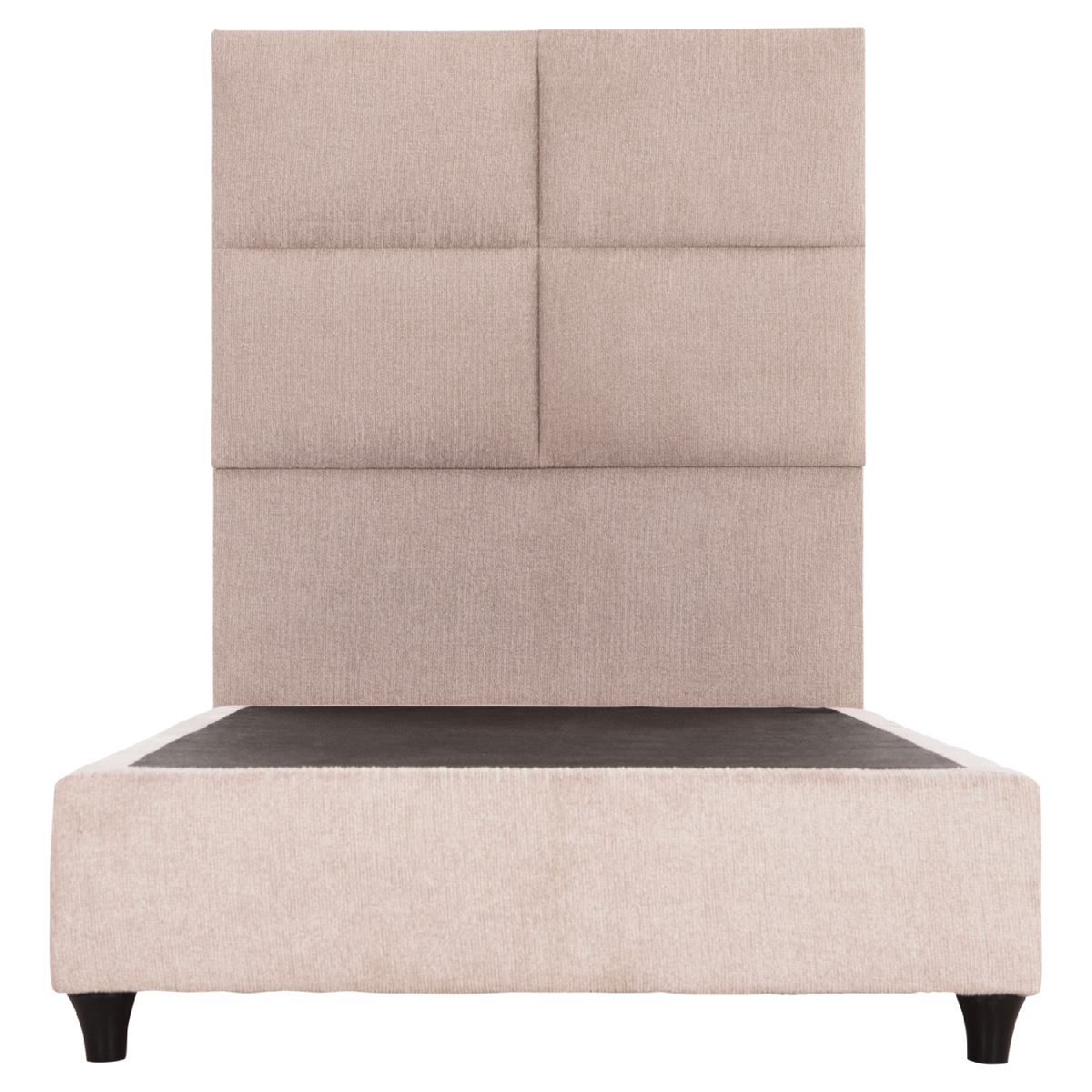 Το μονό κρεβάτι MILO συνδυάζει άνεση, κομψότητα και μοντέρνα αισθητική, αποτελώντας ιδανική επιλογή για υπνοδωμάτια κάθε στυλ. Διαθέτει ψηλό κεφαλάρι επενδυμένο με καπιτονέ τεχνοτροπία σε μεγάλα ορθογώνια, που προσδίδει πολυτέλεια και ζεστασιά στον χώρο. Το ζεστό TEDDY ύφασμα σε μπεζ απόχρωση προσφέρει μια απαλή υφή που ενισχύει την αίσθηση άνεσης. Η βάση στήριξης του στρώματος είναι από μοριοσανίδα επενδυμένη με μαύρο ύφασμα, ενώ το κρεβάτι διαθέτει χαμηλά μαύρα ποδαράκια, προσδίδοντας μοντέρνο και στιβαρό αποτέλεσμα.