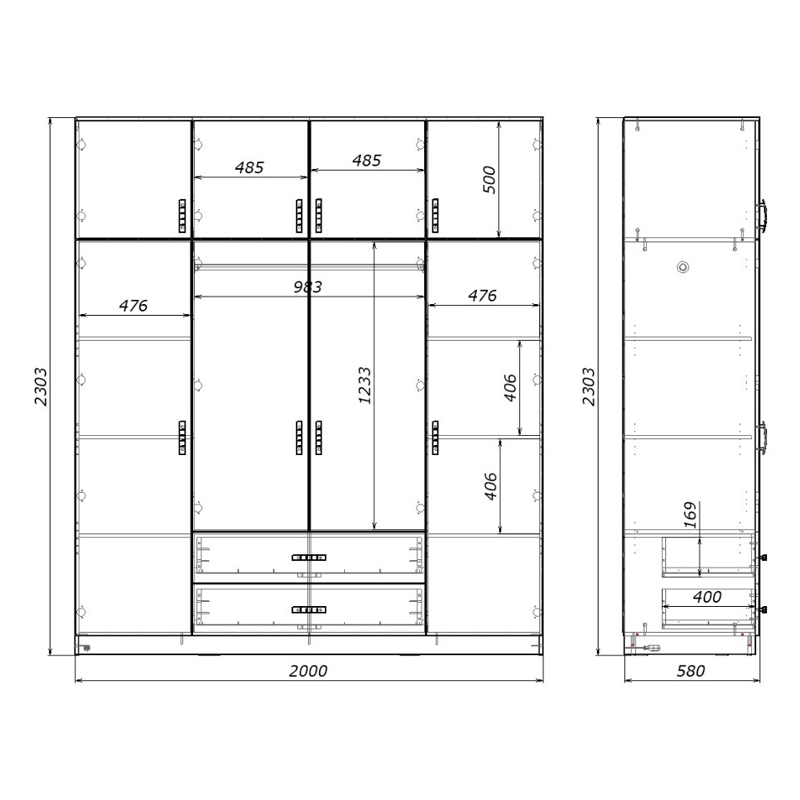 - Στο εσωτερικό περιλαμβάνει μεταλλικη βέργα για κρεμάστρες και πολλαπλά ράφια