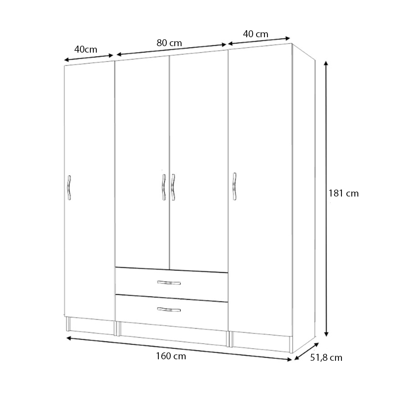 - Διαστάσεις ντουλάπας: Μήκος 160 x Βάθος 51,8 x Ύψος 181 εκ.