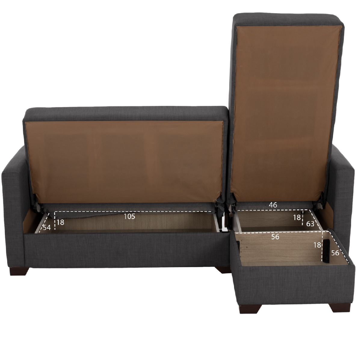 Γιατί, αυτό είναι και το κύριο χαρακτηριστικό αυτού του καναπέ. Εκτός από γωνιακός, γίνεται και κρεβάτι μέσω ενός εύκολου στην χρήση μηχανισμού «κλικ-κλακ». Κι επειδή ο καναπές μπορεί να στηθεί είτε σε αριστερή, είτε σε δεξιά γωνία, η χρησιμότητά του αλλά και η λειτουργικότητά του ξεπερνούν τα συνηθισμένα. Και σαν να μην έφτανε αυτό, κάτω από τα καθίσματα υπάρχουν αποθηκευτικοί χώροι που πάντα είναι χρήσιμοι σε οποιοδήποτε σπίτι κι αν τοποθετηθεί ο καναπές. Ένα ακόμα σπουδαίο χαρακτηριστικό του καναπέ είναι ότι η πλευρά που σχηματίζει την γωνία μπορεί να «αποκοπεί» και να χρησιμοποιηθεί σαν ξεχωριστή πολυθρόνα ή ανάκλιντρο! Τέλος, τα πόδια του καναπέ είναι φαρδιά και χαμηλά δίνοντας στιβαρότητα σε όλη την κατασκευή.