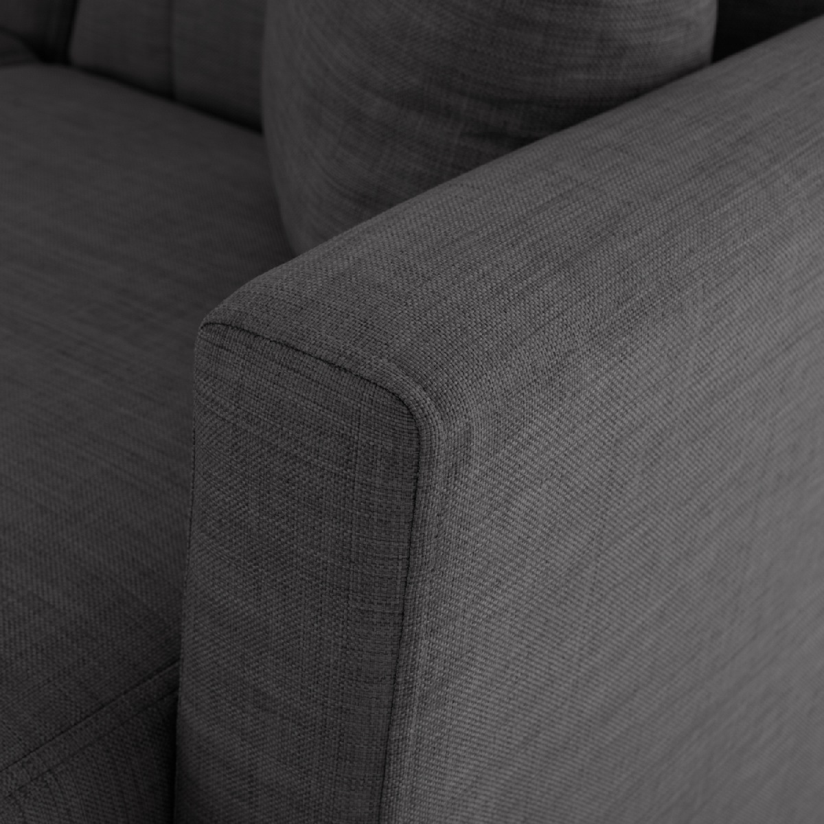 Η επένδυση του κρεβατιού έχει γίνει με ύφασμα εξαιρετικής ποιότητας, ενώ τα γεμίσματα τόσο στο κάθισμα, όσο και στην πλάτη είναι από μέτριας σκληρότητας αφρώδες υλικό που προσφέρει άνεση και ποιότητα στον ύπνο, όταν μετατρέπεται σε κρεβάτι.