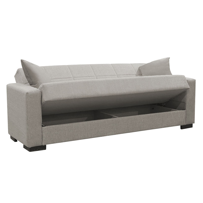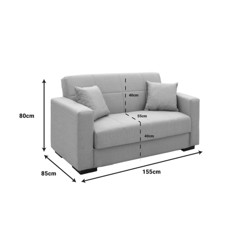 2. Καναπές-κρεβάτι με αποθηκευτικό χώρο διθέσιος Vox pakoworld ανοιχτό γκρι ύφασμα 154x82x83εκ