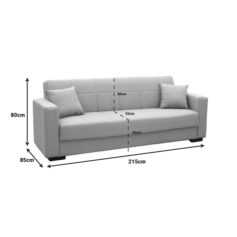 1. Καναπές-κρεβάτι με αποθηκευτικό χώρο τριθέσιος Vox pakoworld ανοιχτό γκρι ύφασμα 214x82x83εκ