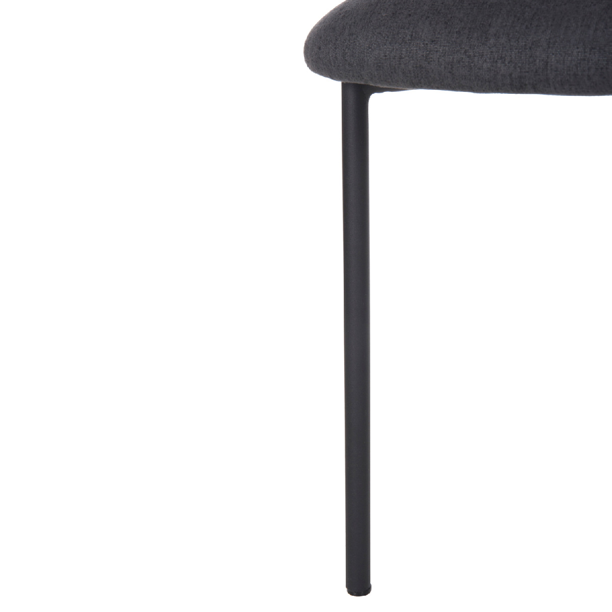 Ένα ορθογώνιο τραπέζι με σκελετό μεταλλικό σε ΜΑΥΡΟ χρώμα και κεραμική επιφάνεια με όψη ΜΑΥΡΟΥ ΜΑΡΜΑΡΟΥ, και 4 καρέκλες με ημικυκλική πλάτη και κάθισμα με επένδυση από ύφασμα σε ΓΚΡΙ χρώμα και μεταλλικά πόδια σε ΜΑΥΡΟ χρώμα.
