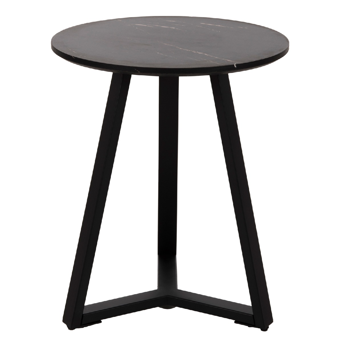 Το βοηθητικό τραπεζάκι ΗΜ9587.01 είναι η καινούργια προσθήκη στην γκάμα μας και θα σας ενθουσιάσει με το στυλ και την πρακτικότητά του. Πρόκειται για ένα στρογγυλό τραπεζάκι με ιδιαίτερο χαρακτηριστικό ότι η επιφάνεια στηρίζεται σε μια μοντέρνα τρίποδη βάση. Η βάση είναι μεταλλική σε ΜΑΥΡΟ χρώμα, ενώ η επιφάνεια είναι κατασκευασμένη από MDF σε χρώμα ΜΑΥΡΟΥ ΜΑΡΜΑΡΟΥ.