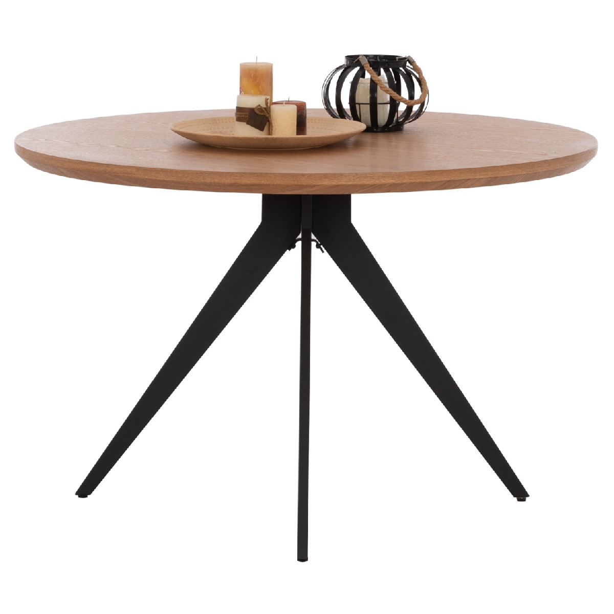 Περιγραφή Το ΗΜ9307.01 είναι ένα όμορφο στρογγυλό τραπέζι για την τραπεζαρία, με επιφάνεια από MDF με καπλαμά από ξύλο δρυός σε χρώμα HONEY OAK και στυλ ρουστίκ. Η επιφάνεια αυτή είναι «φαλτσοκομμένη» και στηρίζεται σε μια μαύρη μεταλλική βάση από την οποία ξεκινούν τα 4 πόδια σε σχήμα πλαγιαστών Λ. Τα τραπέζια ροτόντες είναι ιδιαιτέρως πρακτικά και όμορφα γιατί δεν έχουν κορυφές και «αρχηγούς», ούτε και γωνίες ή πόδια στις γωνίες που, πολλές φορές, δημιουργούν άβολες καταστάσεις. Πρόκειται για ένα επιβλητικό τραπέζι σε μεγάλη διάσταση και με όμορφη διχρωμία, με αποτέλεσμα να μπορεί να ταιριάξει αισθητικά σχεδόν σε κάθε ανάλογο χώρο.