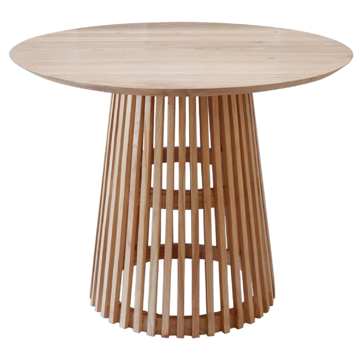 Το ΗΜ9388.01 είναι ένα στρογγυλό τραπέζι για την τραπεζαρία, με ικανοποιητικές διαστάσεις σε φυσικό χρώμα ξύλου. Το τραπέζι στηρίζεται σε μια ξύλινη κατασκευή στο κέντρο με πολλές δοκούς σε κυκλική διάταξη που ενώνονται μεταξύ τους με δακτυλίους στην εσωτερική πλευρά. Αυτό το τραπέζι θα αναβαθμίσει αισθητικά την τραπεζαρία σας ενώ μπορεί να ταιριάξει με πολλά διαφορετικά στυλ και χρώματα στον τριγύρω χώρο, όπως και με διαφορετικά στυλ καρέκλας.