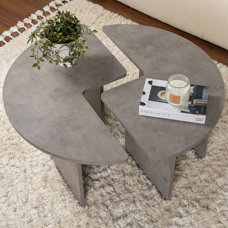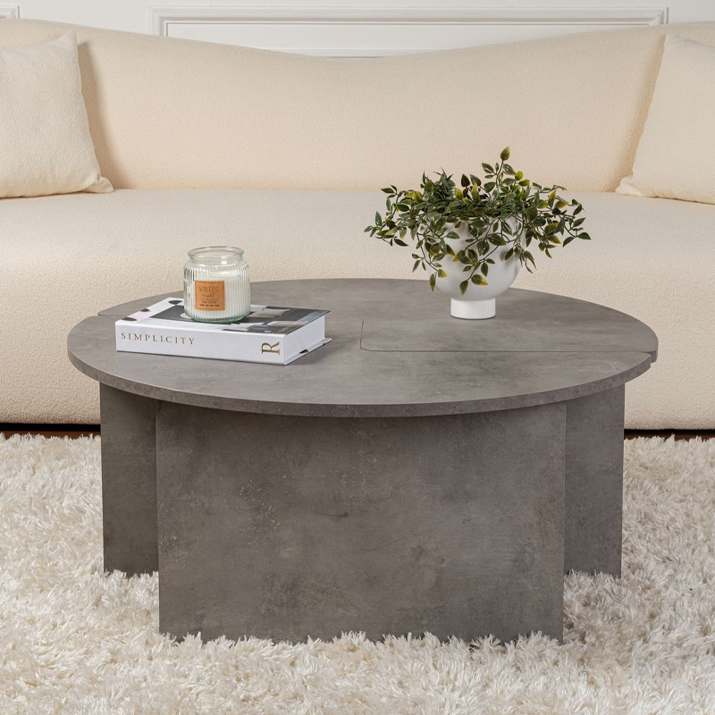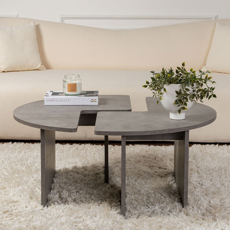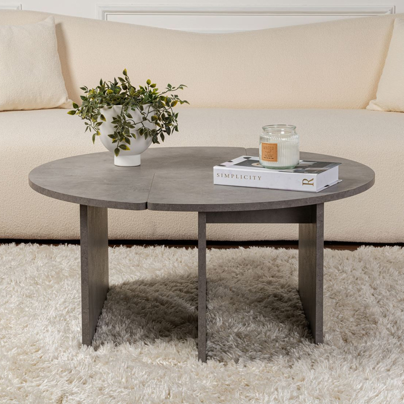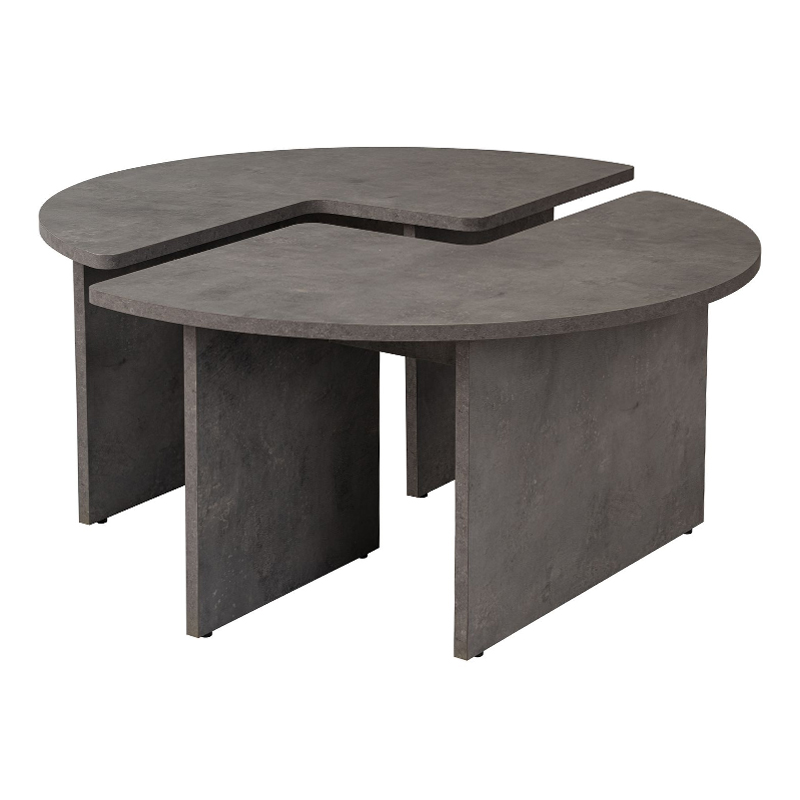 Τραπεζάκι σαλονιού σετ 2 τμχ Moira Megapap χρώμα γκρι σκυροδέματος Ø90x41εκ.