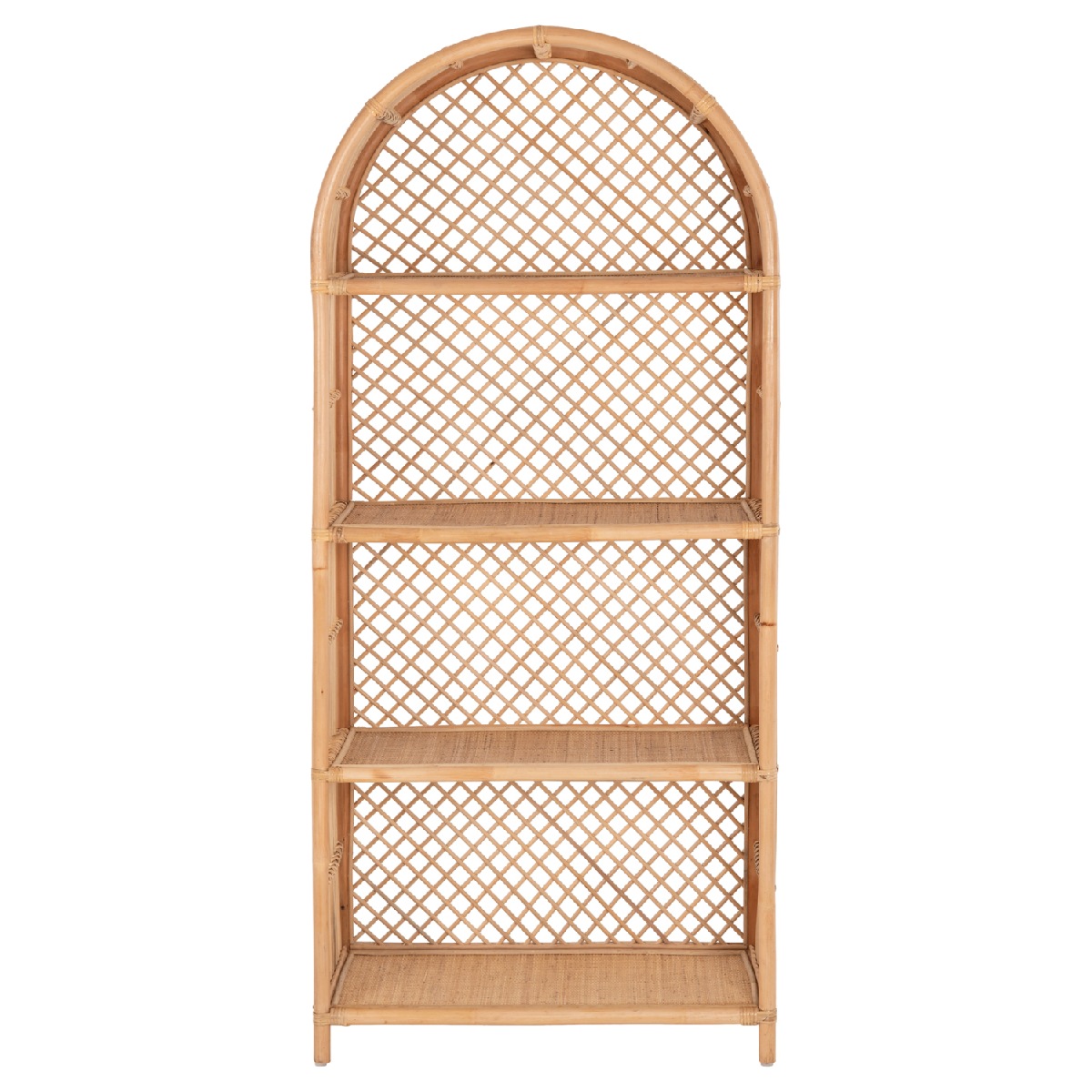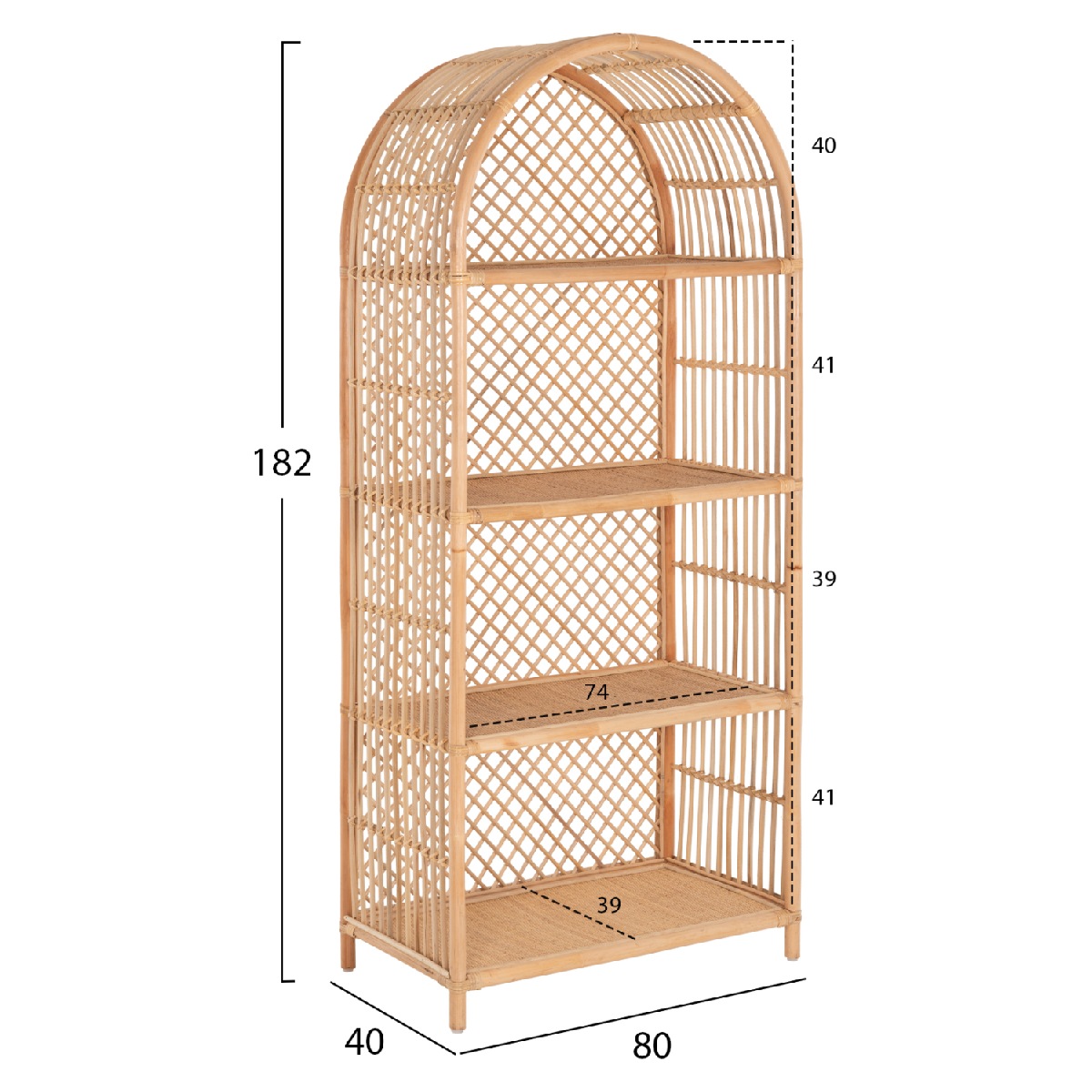 Η βιβλιοθήκη SIMOK είναι μια πρόταση για το γραφείο σας ή οπουδήποτε αλλού θέλετε να τοποθετήσετε μια βιβλιοθήκη σε boho στυλ. Διαθέτει 4 ράφια, τα οποία είναι μονταρισμένα σε έναν πανέμορφο σκελετό με «δικτυωτή» πλάτη και σχήμα αψιδωτό στο επάνω μέρος. Το χρώμα της κατασκευής είναι το ΦΥΣΙΚΟ χρώμα του RATTAN που είναι το υλικό κατασκευής ολόκληρης της βιβλιοθήκης.
