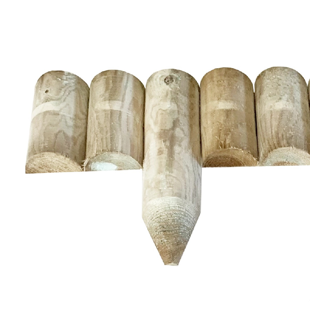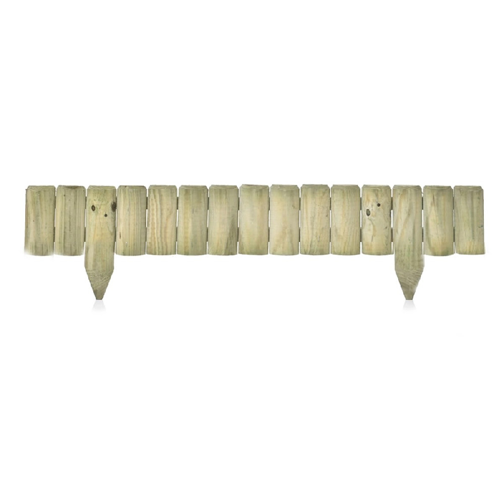 Χαμηλός ξύλινος φράχτης κήπου από κάθετα μισόξυλα Ø7εκ., ύψους 15εκ. και μήκους 105εκ. Κατασκευάζεται από Σκανδιναβική πεύκη εμποτισμένη μασίφ, ανθεκτική στην υγρασία και στις εξωτερικές συνθήκες.