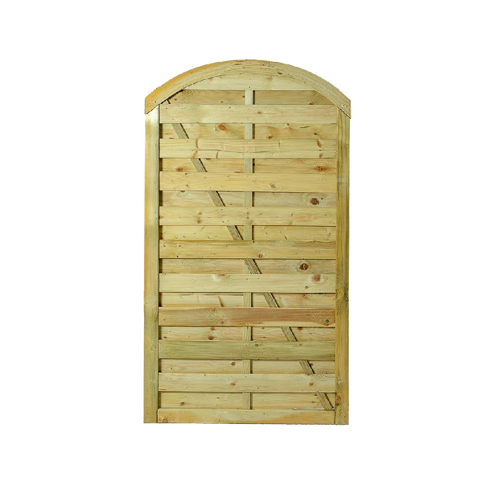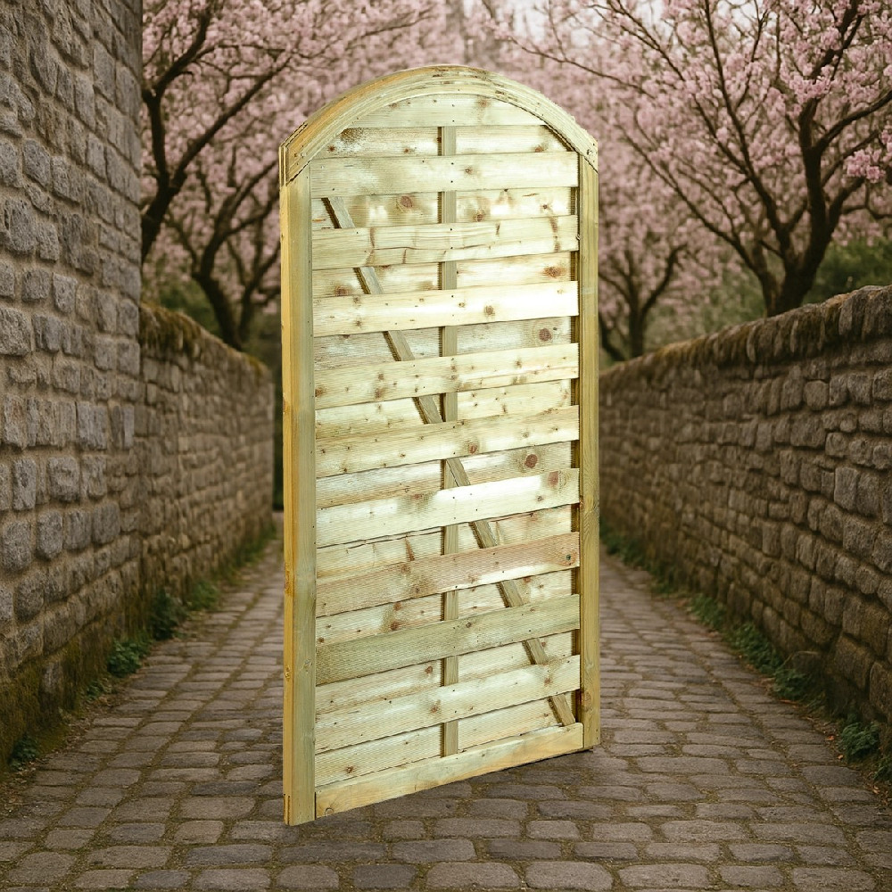 Η ξύλινη πόρτα κήπου με αψίδα είναι η ιδανική επιλογή για να συνδυαστεί με ξύλινα πάνελ περίφραξης, προσφέροντας πρακτικότητα και κομψότητα. Κατασκευασμένη από εμποτισμένη σκανδιναβική πεύκη υψηλής ποιότητας, με πλήρες πλαίσιο και αντοχή στις καιρικές συνθήκες, εξασφαλίζει ασφάλεια και μακροχρόνια χρήση.