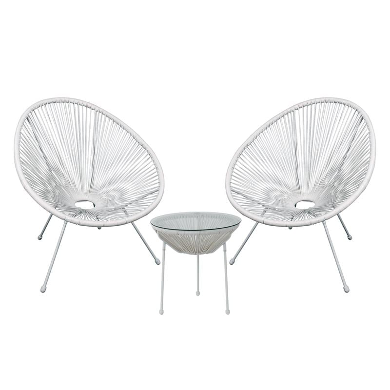 Ε245,Α1S ACAPULCO Set (Τραπ+2 Πολ) Μετ.Άσπρο, Plastic Rattan Άσπρο