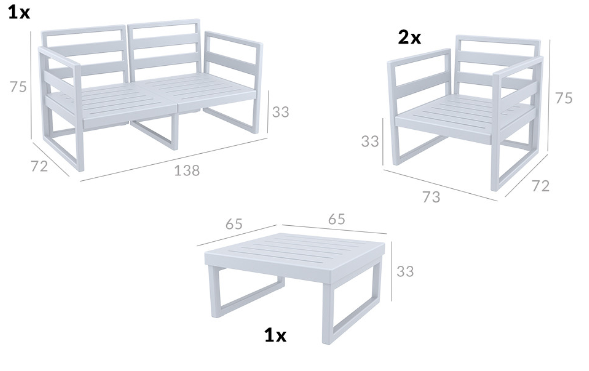 Διαστάσεις: 138Χ72Χ75/73Χ72Χ75/65Χ65Χ33εκ.