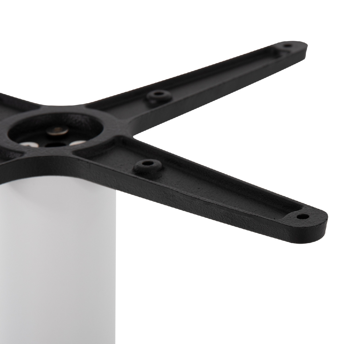 Η ΗΜ439.02 είναι βάση για τραπέζι bar σε ΛΕΥΚΟ ΜΑΤ χρώμα. Αυτή η βάση είναι μεταλλική με μία κολώνα η οποία στηρίζεται σε μια βαριά επίπεδη μεταλλική επιφάνεια. Το χαρακτηριστικό που κάνει αυτή την βάση ιδιαίτερα πρακτική είναι ότι το καπάκι που θα διαλέξετε στηρίζεται σε μια μεταλλική διάταξη «σταυρό», με αποτέλεσμα να μπορεί να δεχθεί τόσο στρογγυλά καπάκια, όσο και τετράγωνα. Επίσης, στο κάτω μέρος της διαθέτει ρυθμιστές ύψους (ρεγουλατόρους). Ιδανική πρόταση για συνδυασμό με επιφάνειες σχεδόν κάθε είδους, όπως βερσαλίτες, HPL, MDF, κτλ.