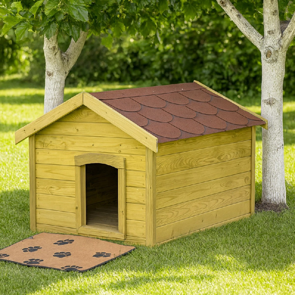 Καλώς ήλθατε στον κόσμο της άνεσης και της προστασίας για τον αγαπημένο σας τετράποδο φίλο! Σας παρουσιάζουμε το ξύλινο σπίτι σκύλου, ένα καταφύγιο κατασκευασμένο από εμποτισμένη ξυλεία για εξωτερική χρήση, που θα προσφέρει ασφάλεια και άνεση στον πιστό σας σύντροφο.