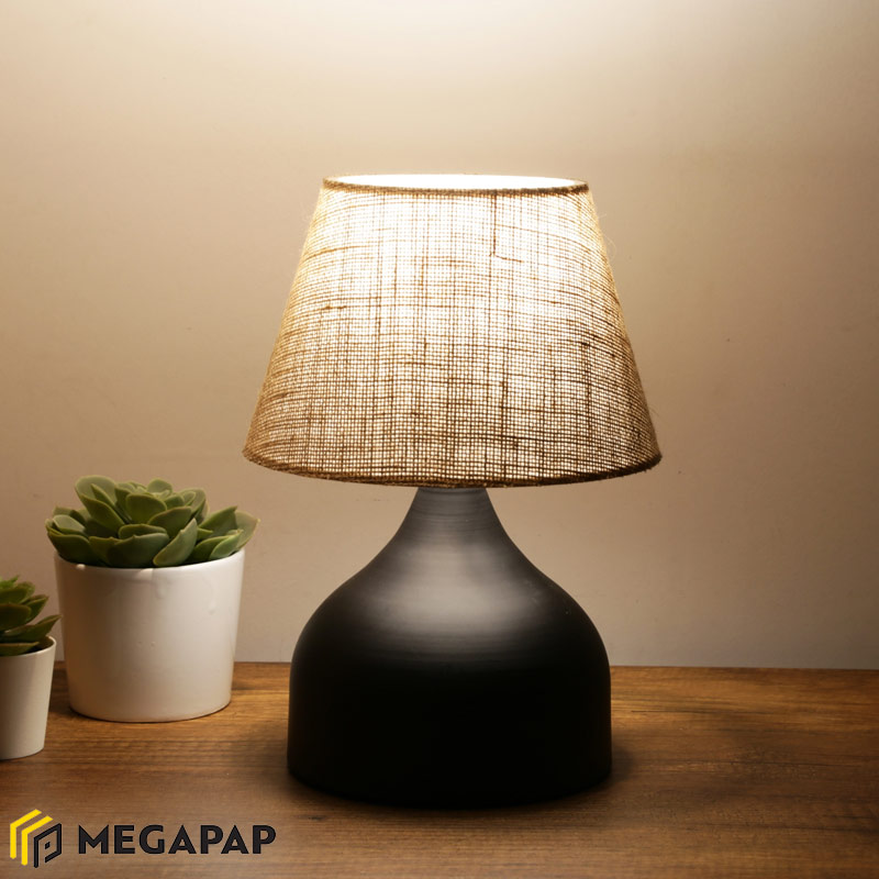 Φωτιστικό επιτραπέζιο Hubert Megapap ύφασμα/μέταλλο χρώμα καφέ/μαύρο 22x14x32εκ.