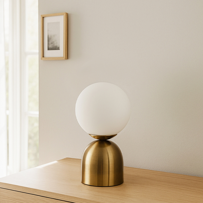 Φωτιστικό επιτραπέζιο Ryka Megapap E14 μεταλλικό - γυάλινο χρώμα χρυσό αντικέ - λευκό Ø15x28εκ. Ψάχνεις να φωτίσεις το δωμάτιο, το σαλόνι, την κρεβατοκάμαρα, χώρους του ξενοδοχείου σου, όπως το lobby, το εστιατόριο ή τα δωμάτια; Αναζητάς το φωτιστικό που θα ολοκληρώσει την εικόνα του χώρου σου και θ' αναδείξει τις διαφορετικές λειτουργίες του; Ζητάς το φωτιστικό εκείνο που θα φωτίσει τους χώρους σου έτσι, ώστε να αποτελούν ένα ενιαίο σύνολο και να είναι ομαλή η μετάβαση μεταξύ τους; Το επιτραπέζιο φωτιστικό Ryka είναι η απάντηση σε όλα!