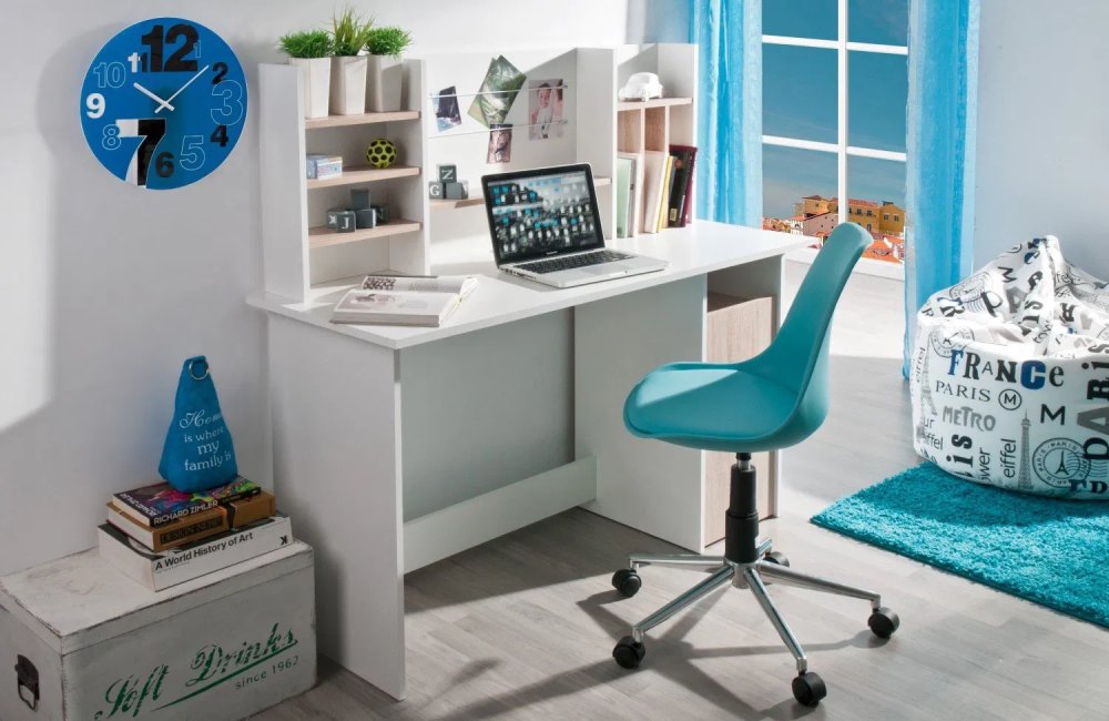 Γραφείο Ombre σε μοντέρνο και πρακτικό σχεδιασμό. Σε χρωματικό συνδυασμό Φυσικού και Λευκού