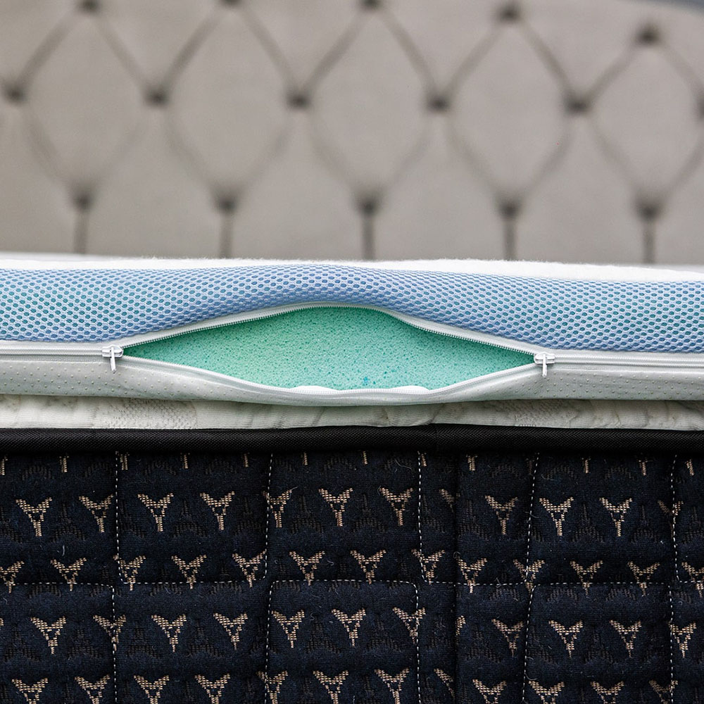 Το εξωτερικό κάλυμμα είναι αποσπώμενο και πλενόμενο στους 30οC. Περιλαμβάνει μικροσκοπικά σφαιρίδια gel τα οποία βοηθούν στην καλύτερη ρύθμιση της θερμοκρασίας και κυκλοφορίας του αέρα, προσφέροντας έτσι μεγαλύτερη αίσθηση δροσιάς.